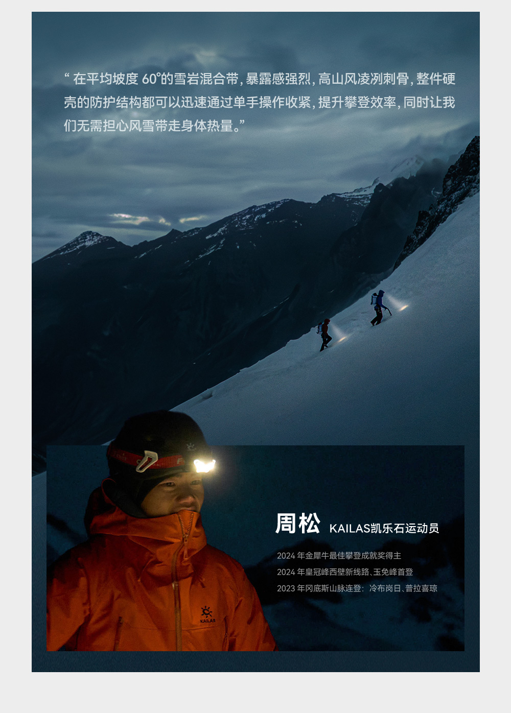 - 致力于推动登山及探险运动发展,为运动员及专业爱好者提供高性能的户外装备。