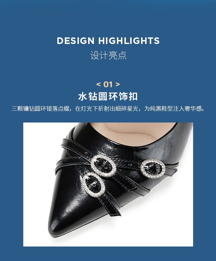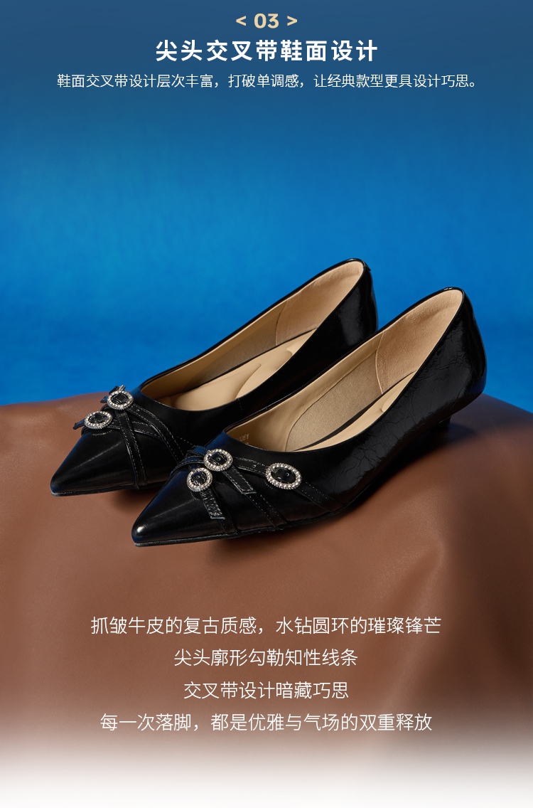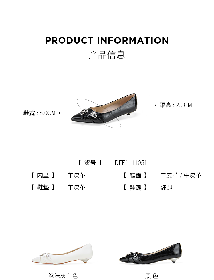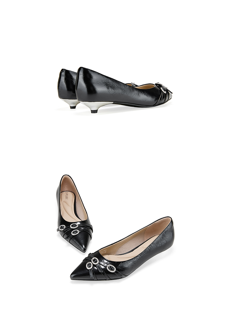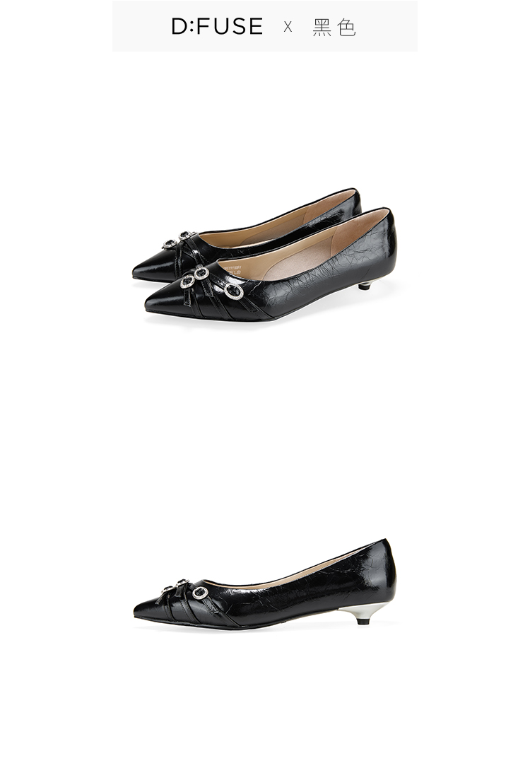 Dfuse迪芙斯2026春季新款尖头交叉带小钻扣轻朋克小猫跟单鞋女鞋DFE1111051