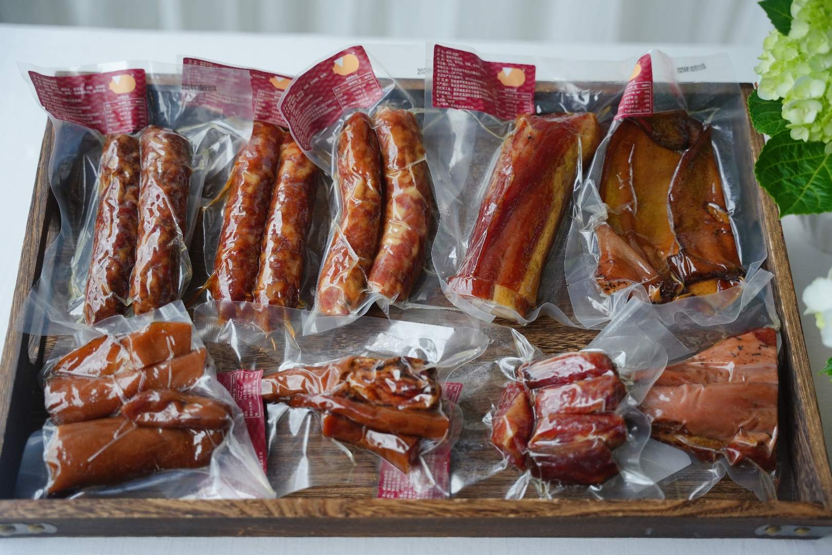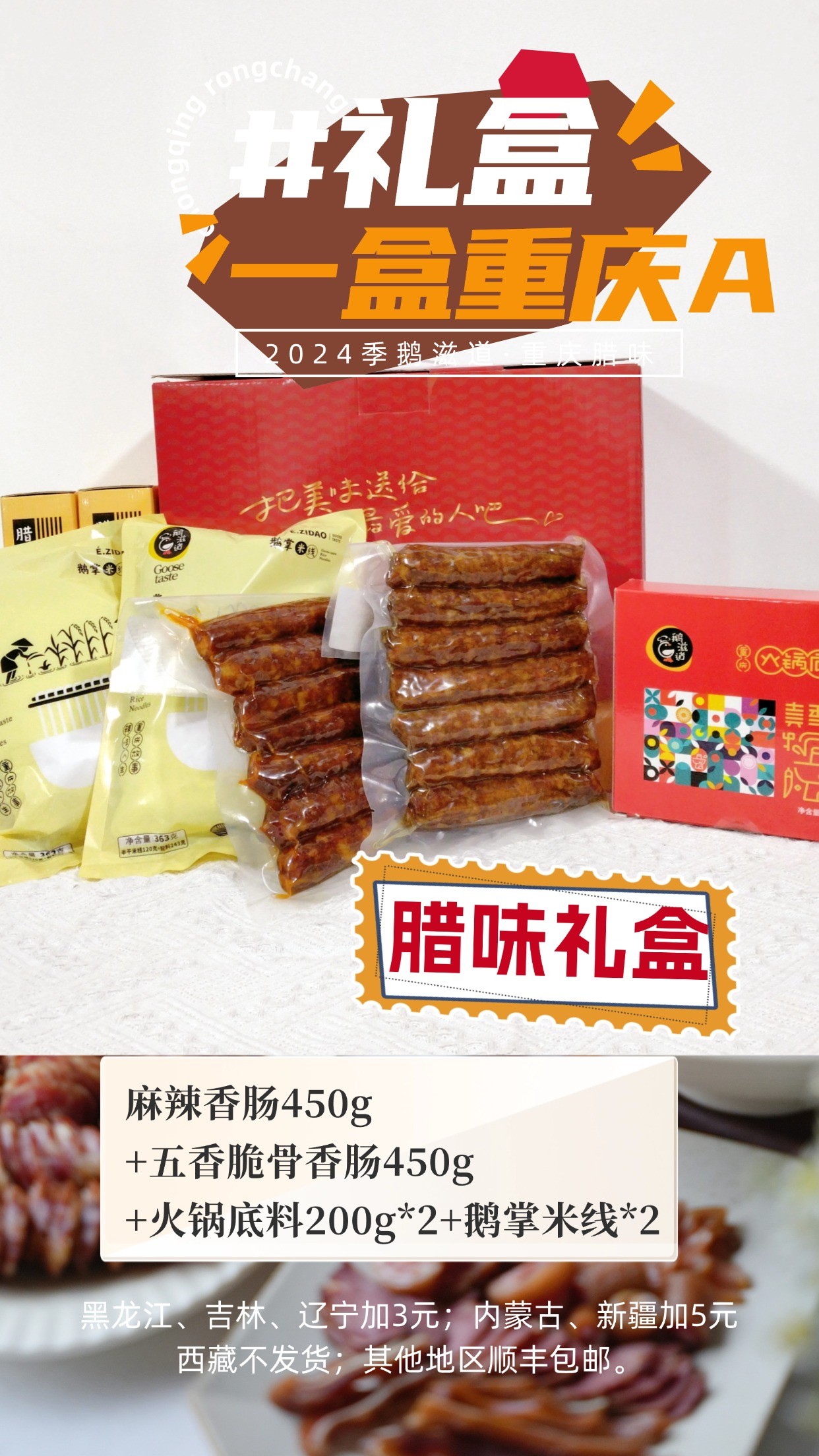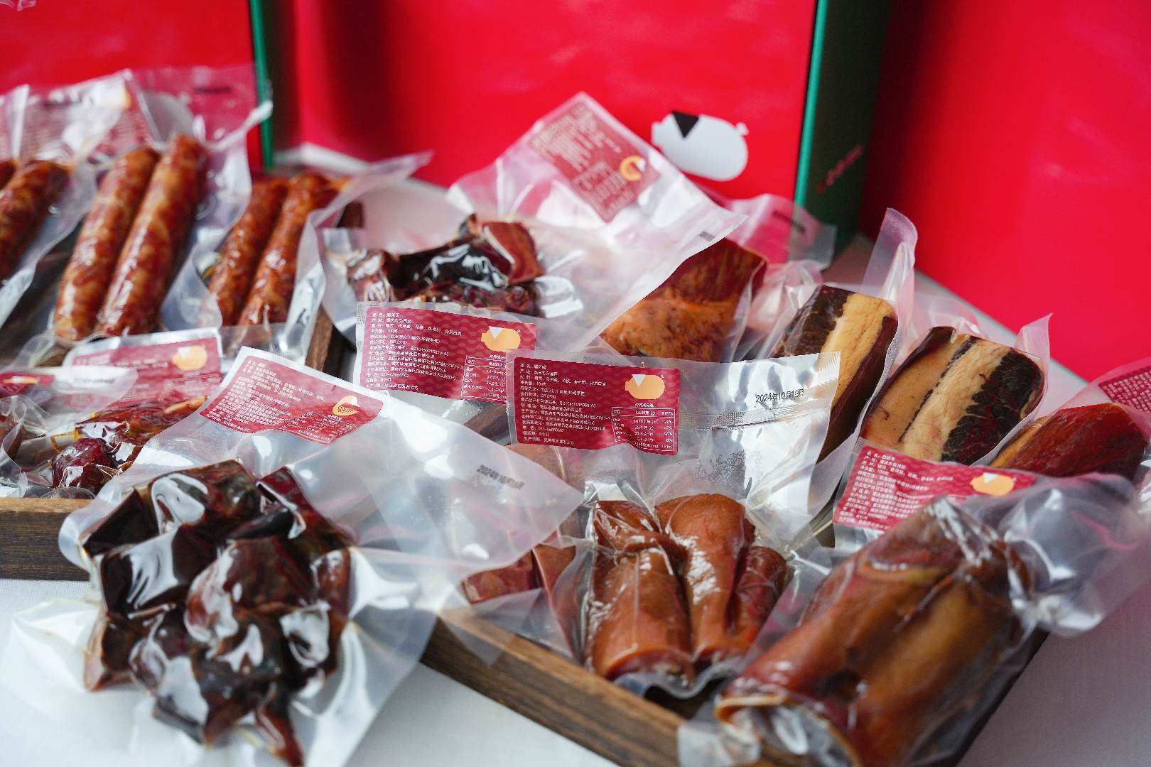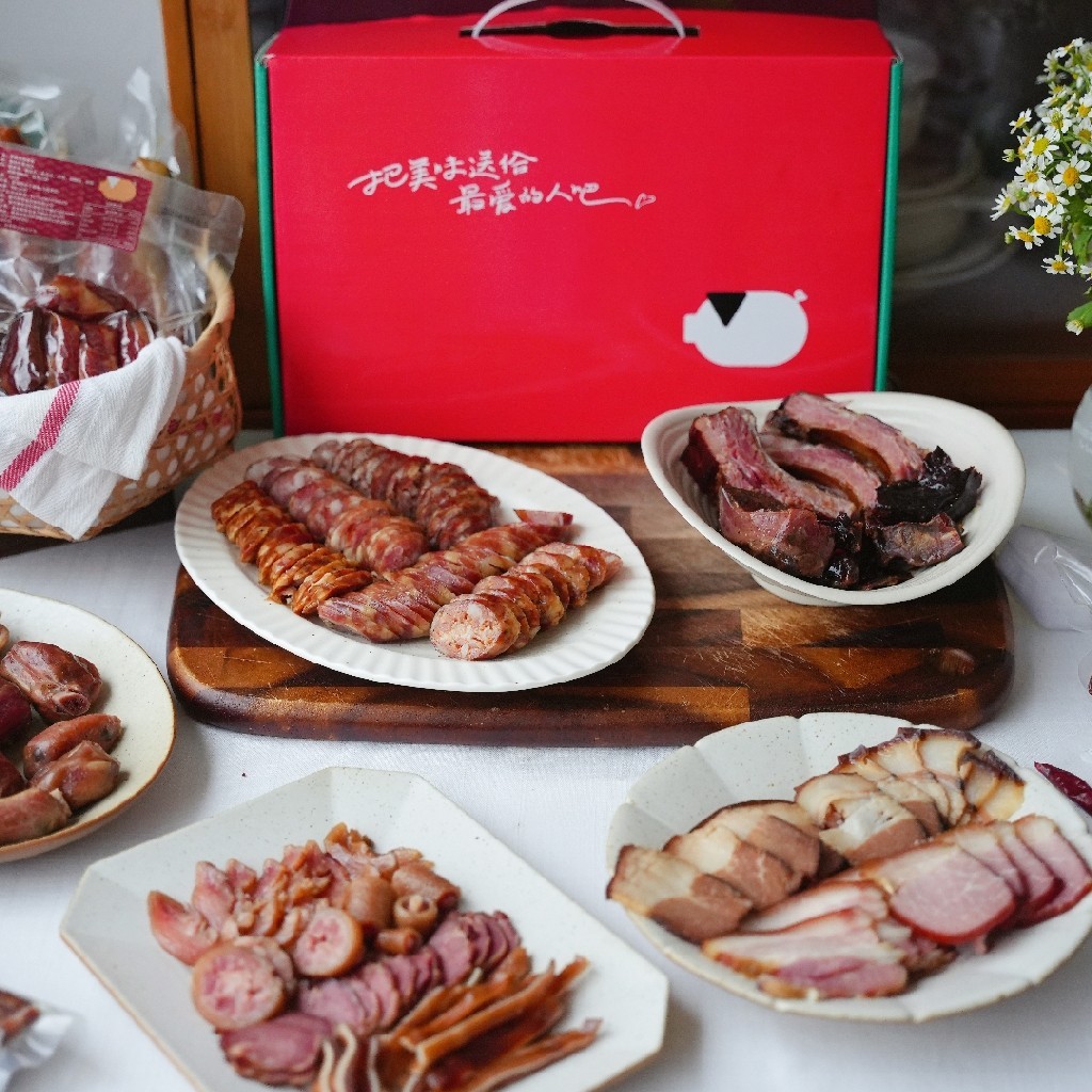 礼盒品种丰富多样:香肠腊肉的经典、腊猪副的特色,还有鹅杂米线、酱鹅、酱肉等独家产品组合,满足了不同人的口味需求。