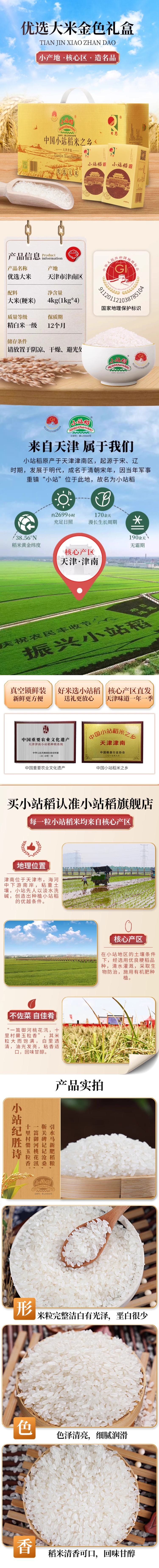 津农精品 日思小站稻金色礼盒500g*8