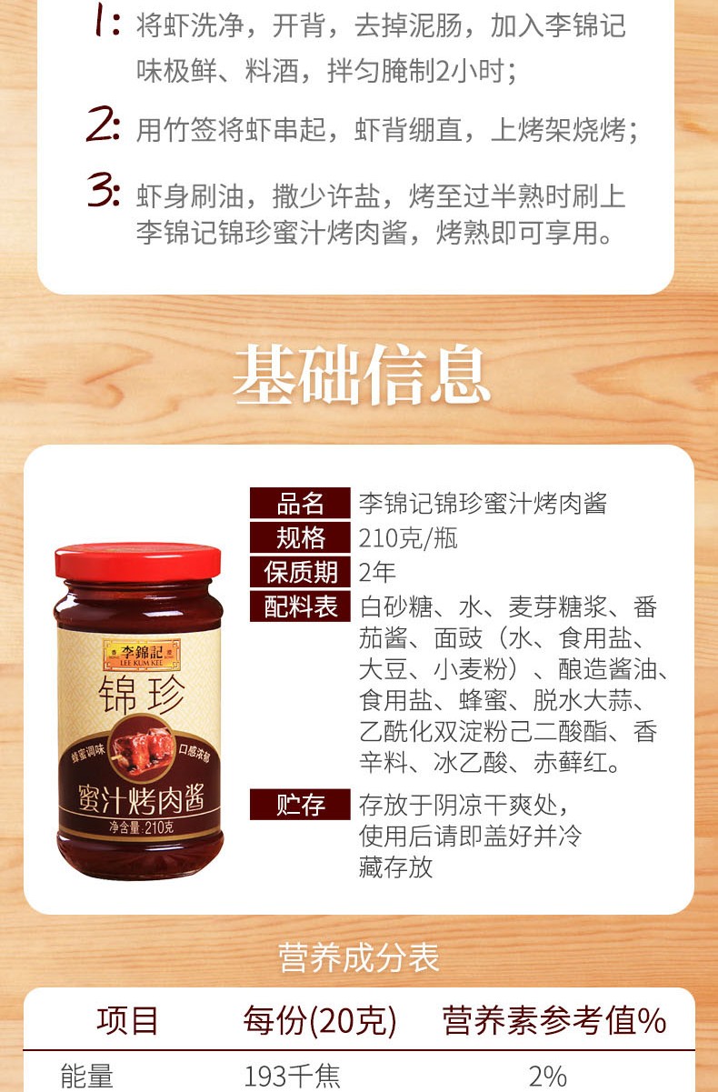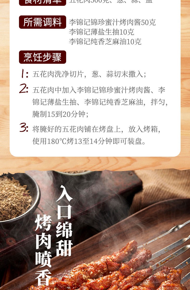 李锦记 调味酱 蜜汁烤肉酱 烧烤蜜汁酱料 210g