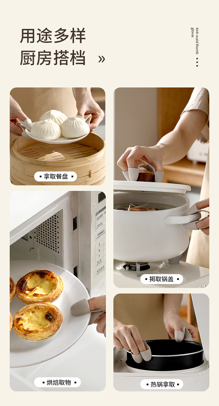 FaSoLa防烫手套隔热耐高温厨房烤箱微波炉专用防滑硅胶手指套手夹