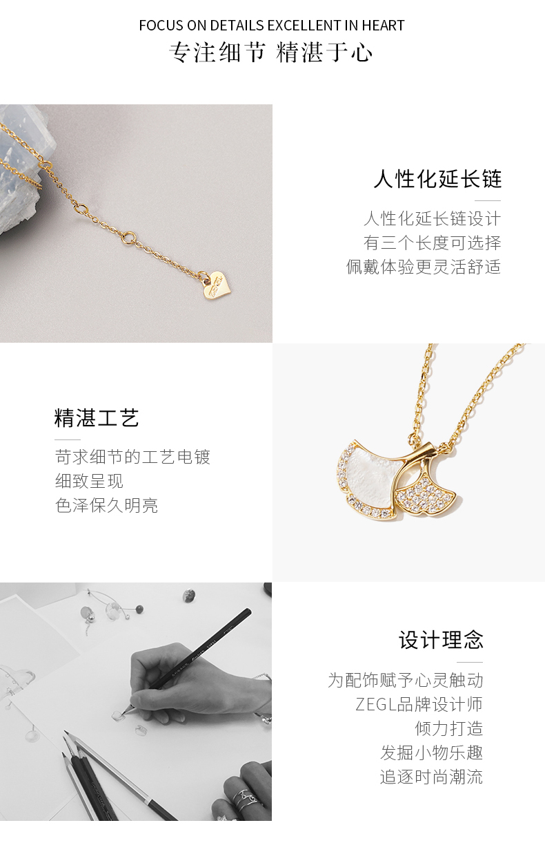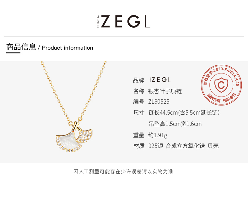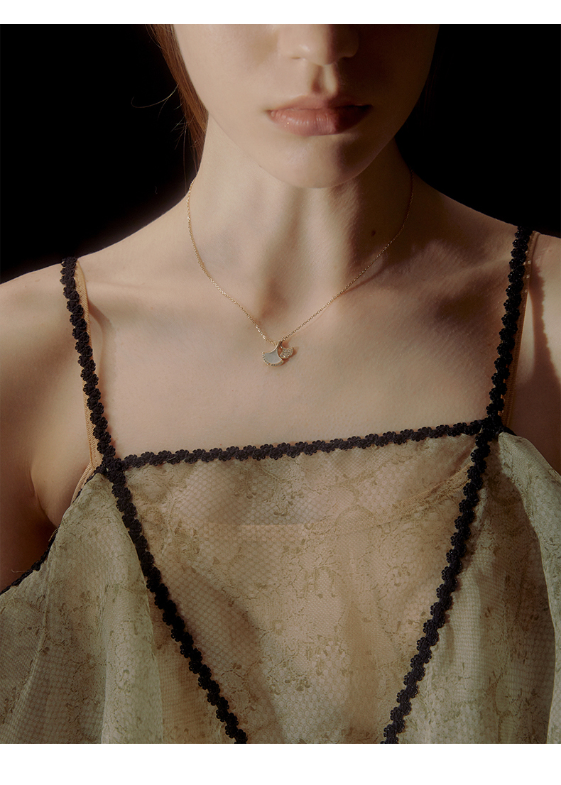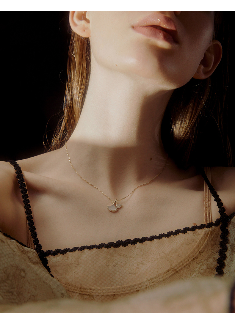 ZEGL银杏叶项链女925纯银轻奢小众锁骨链生日情人节520礼物送女友