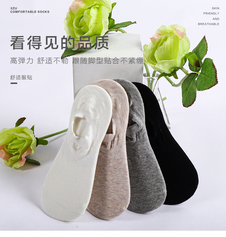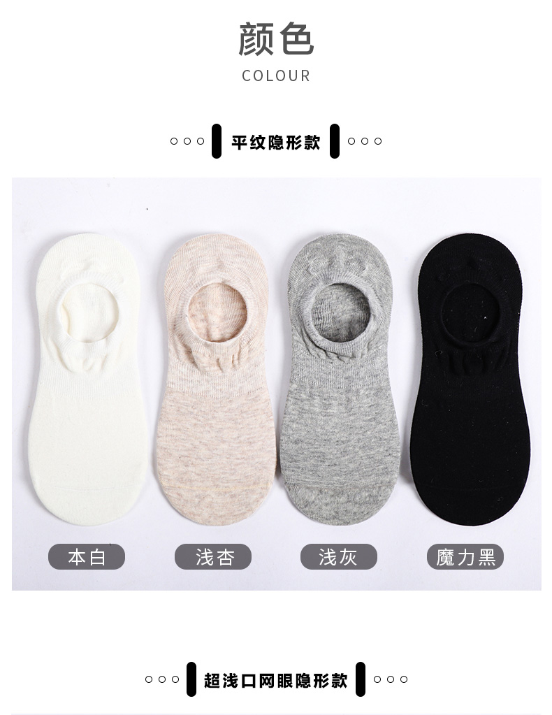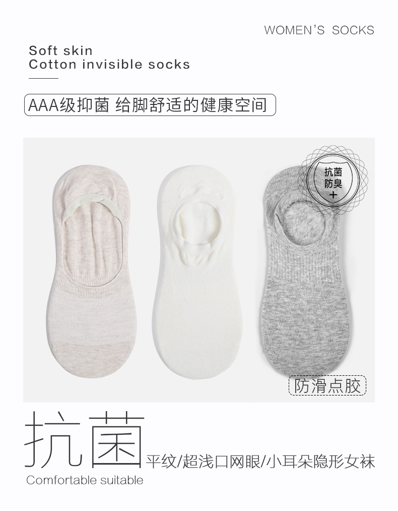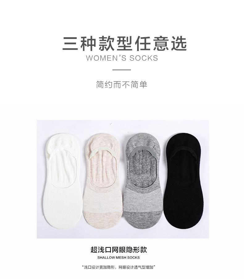 5双58.5元 春秋女士短袜夏天抗菌防臭棉袜薄款防脱隐形女袜