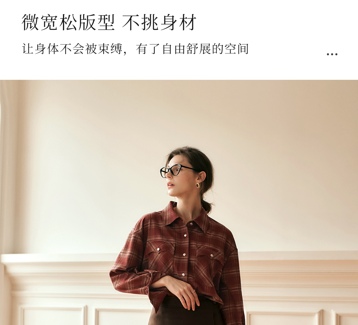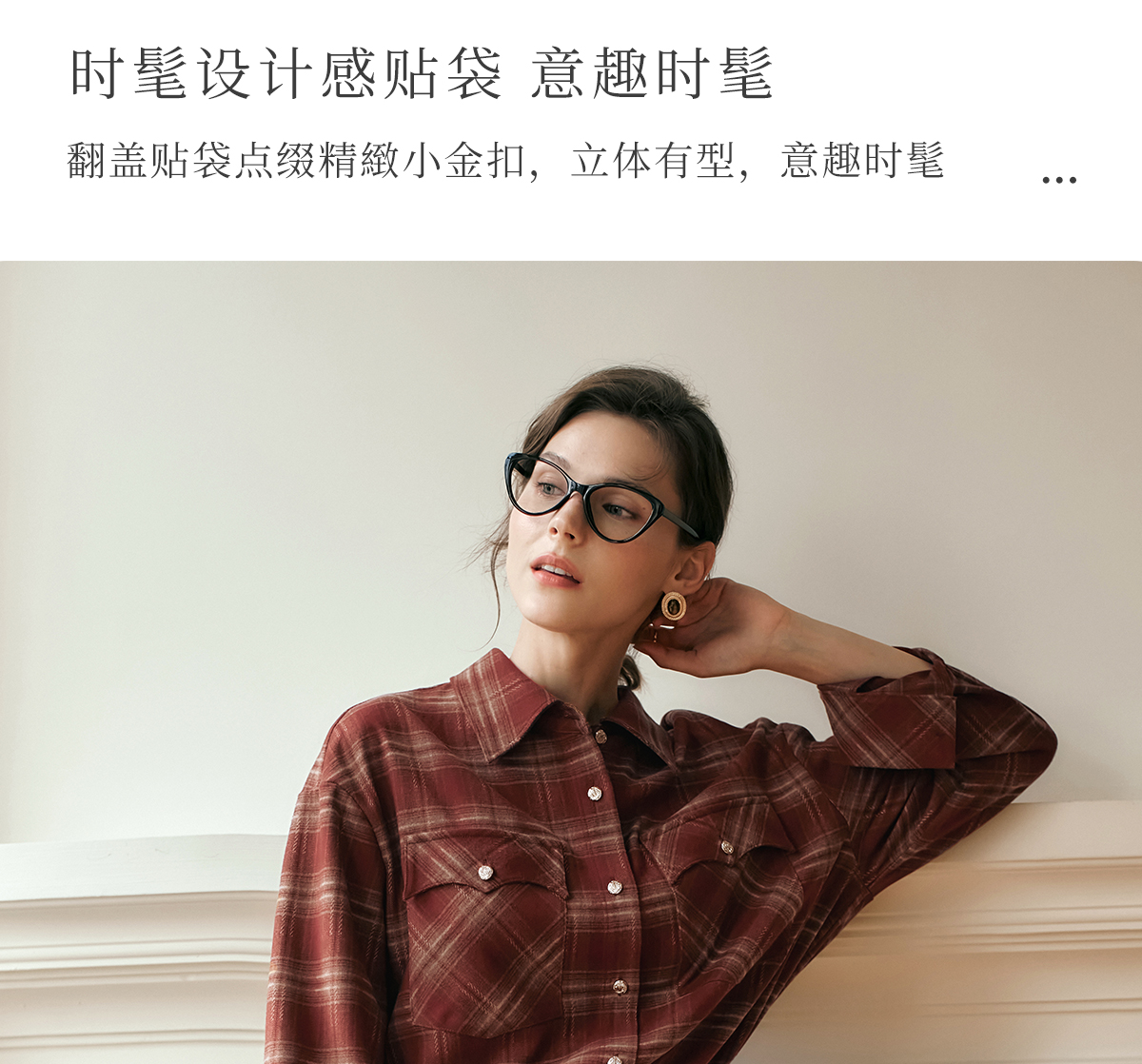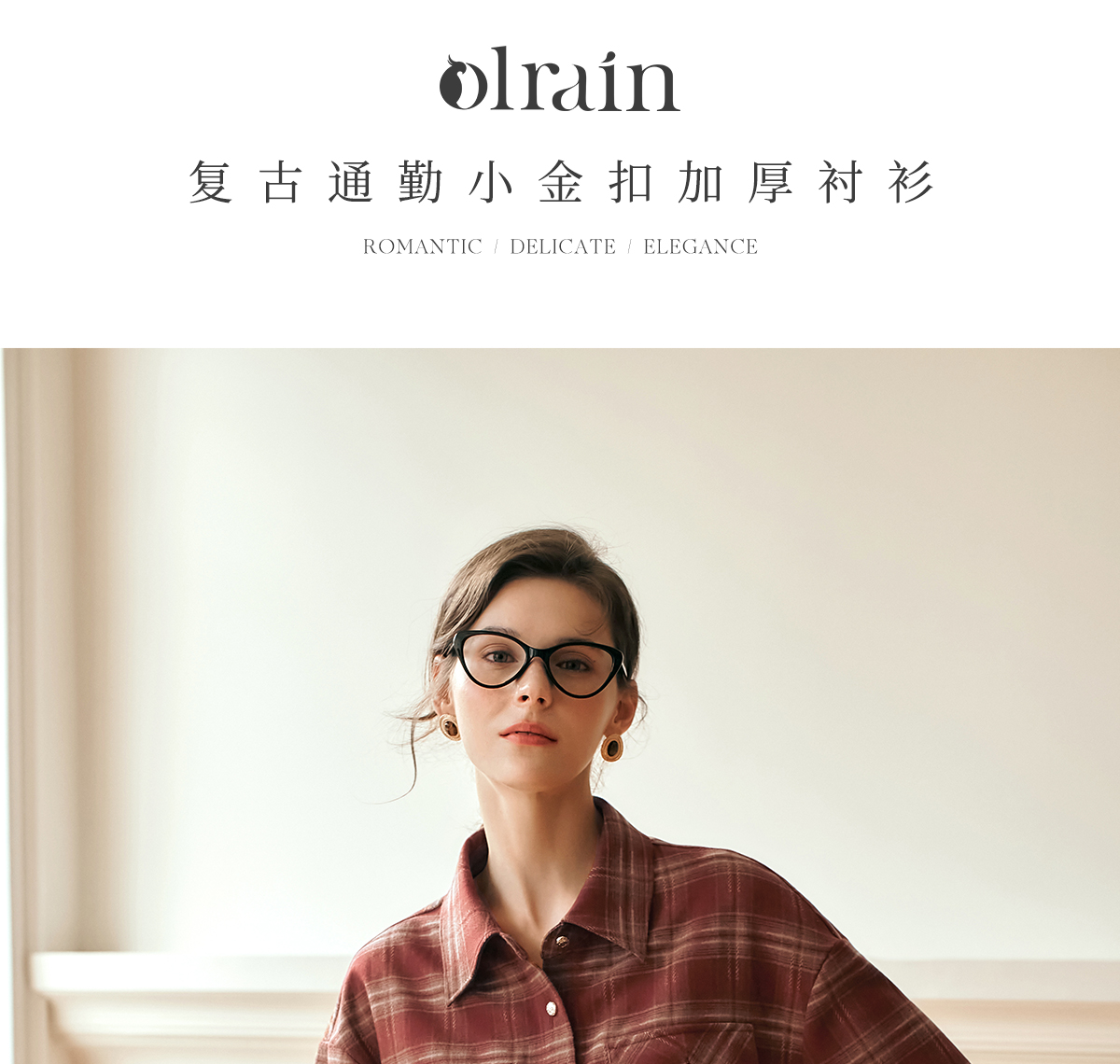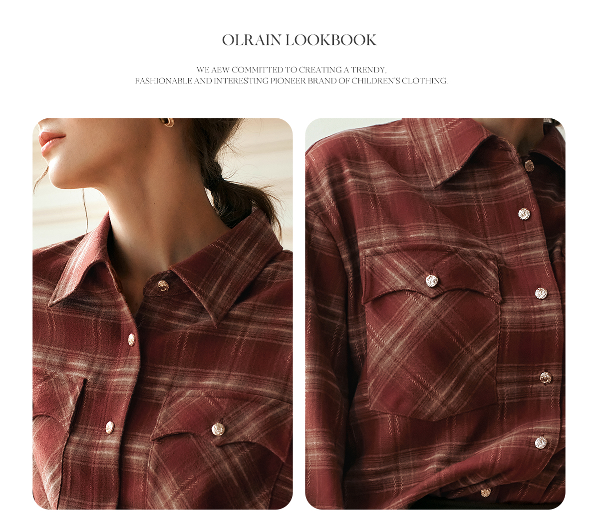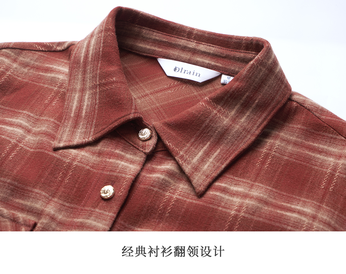OLrain欧芮儿格子长袖衬衫女冬季2024年新款简约休闲宽松加厚上衣