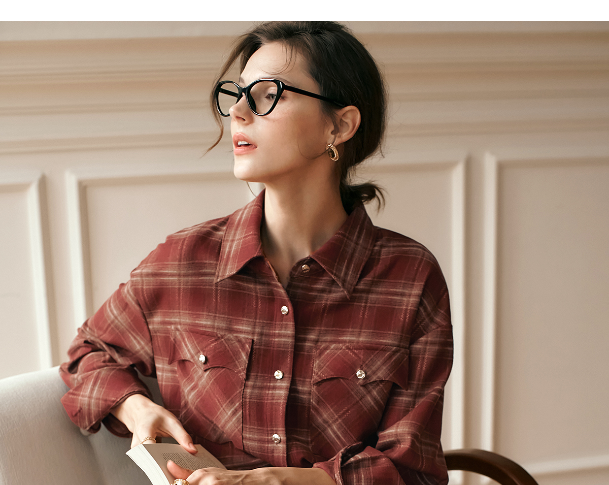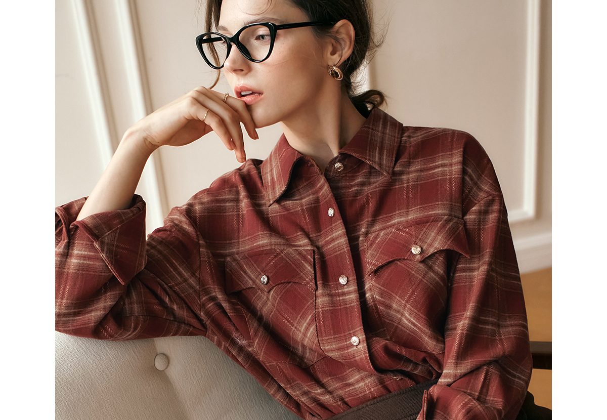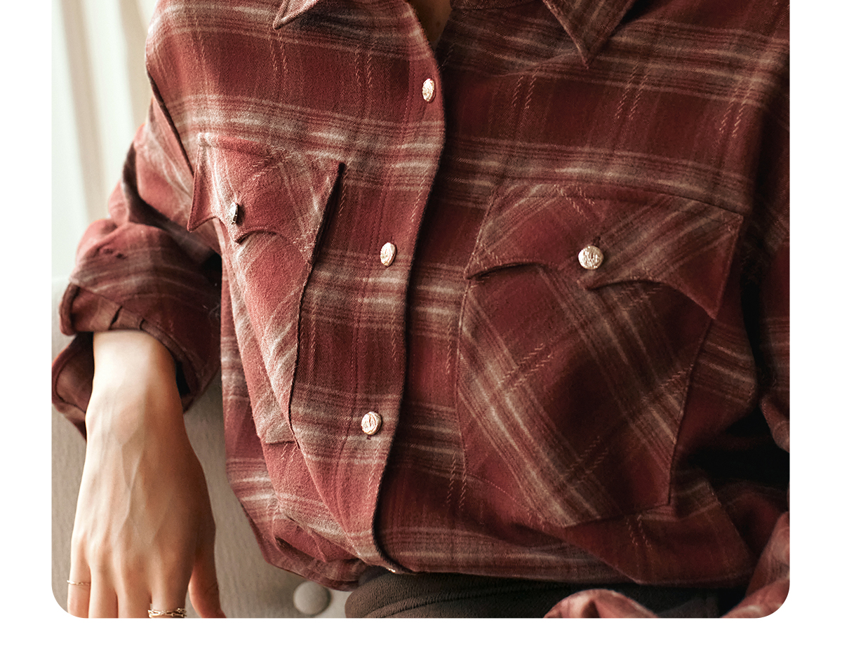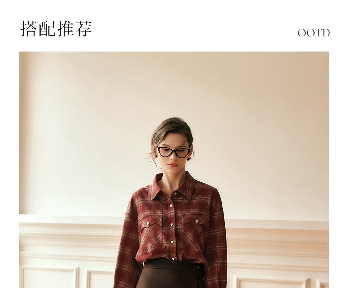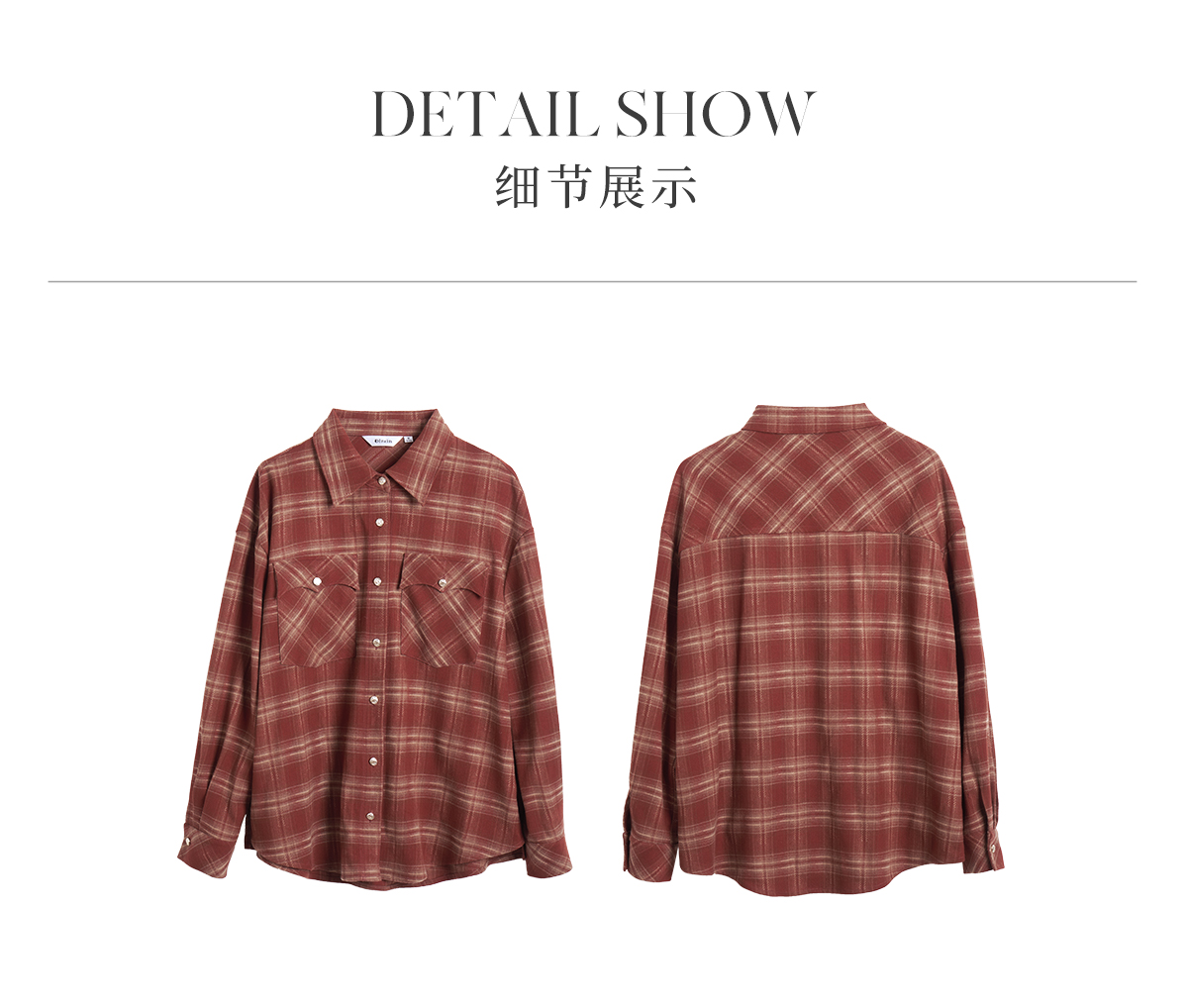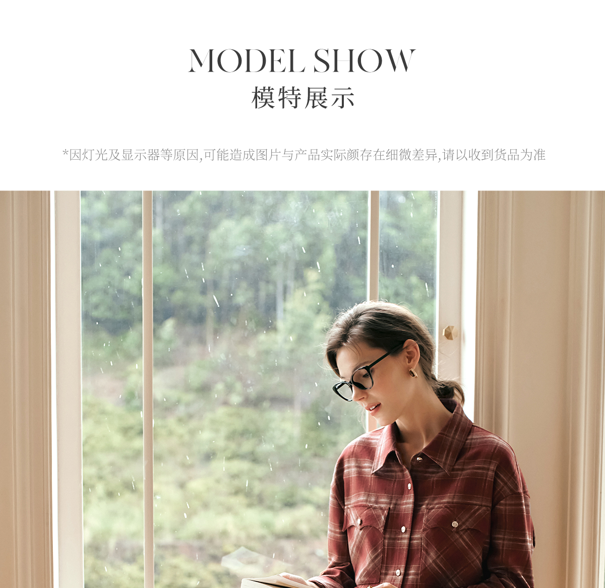 OLrain欧芮儿格子长袖衬衫女冬季2024年新款简约休闲宽松加厚上衣