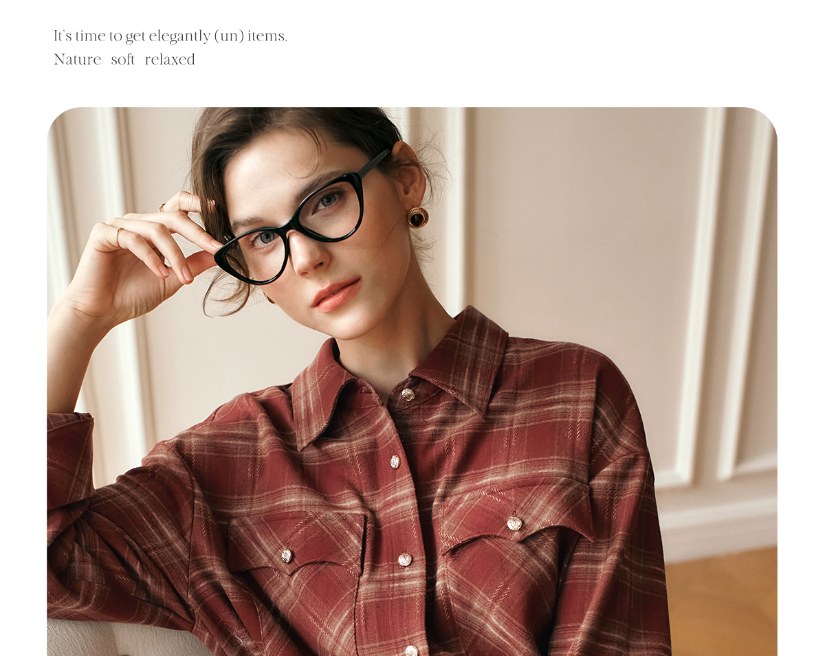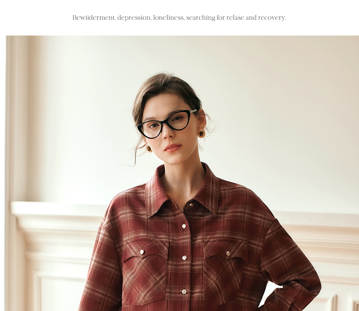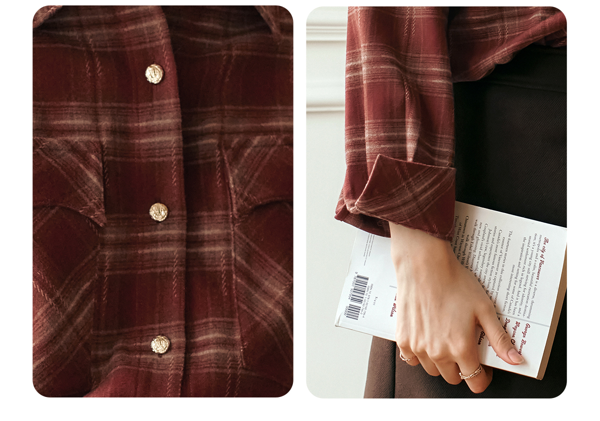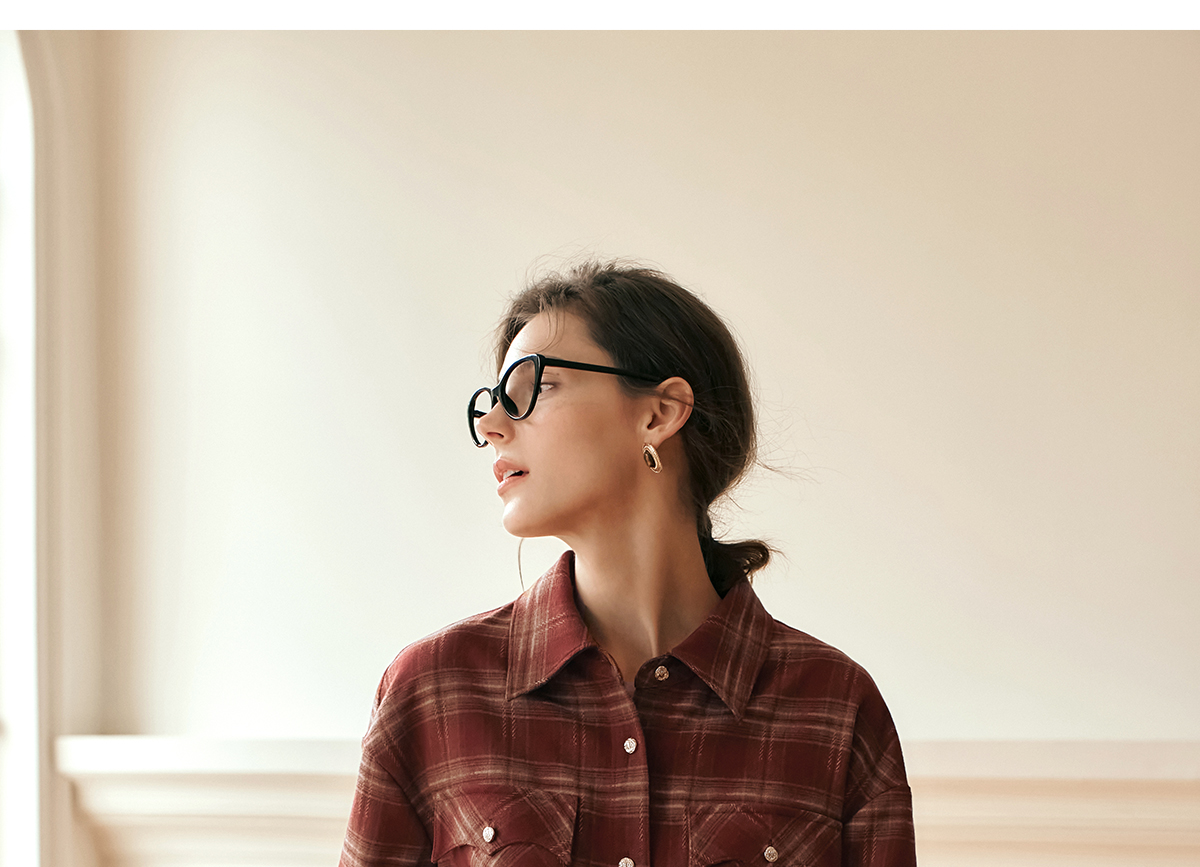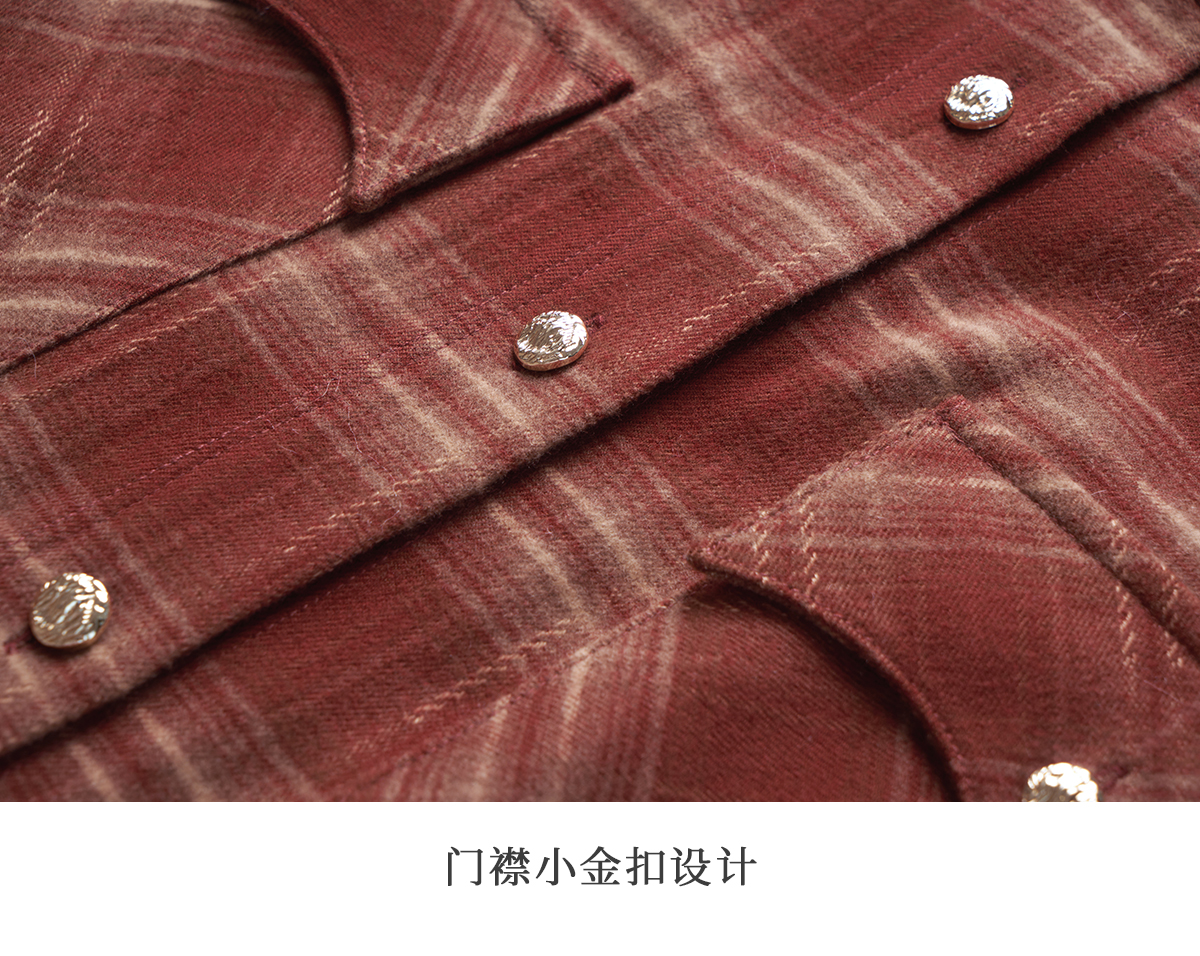 OLrain欧芮儿格子长袖衬衫女冬季2024年新款简约休闲宽松加厚上衣