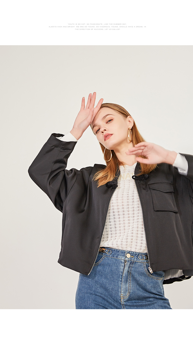 oldcolour春季中国风盘扣拉链设计感短款休闲小外套女N12041270