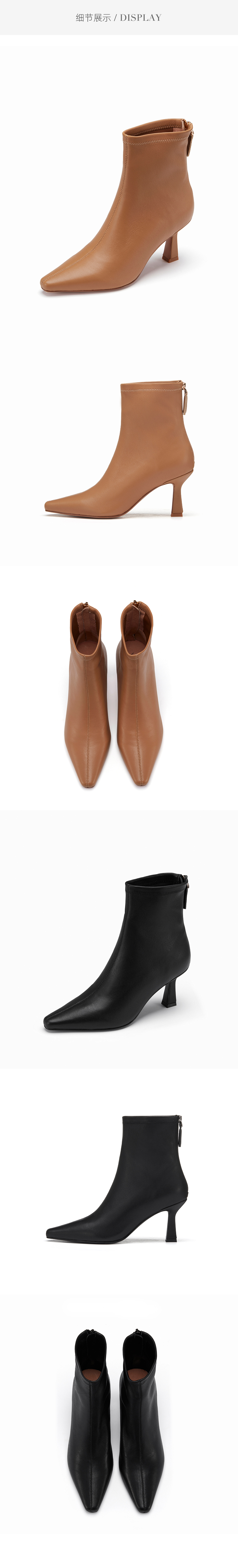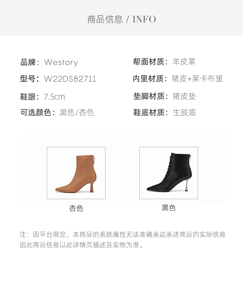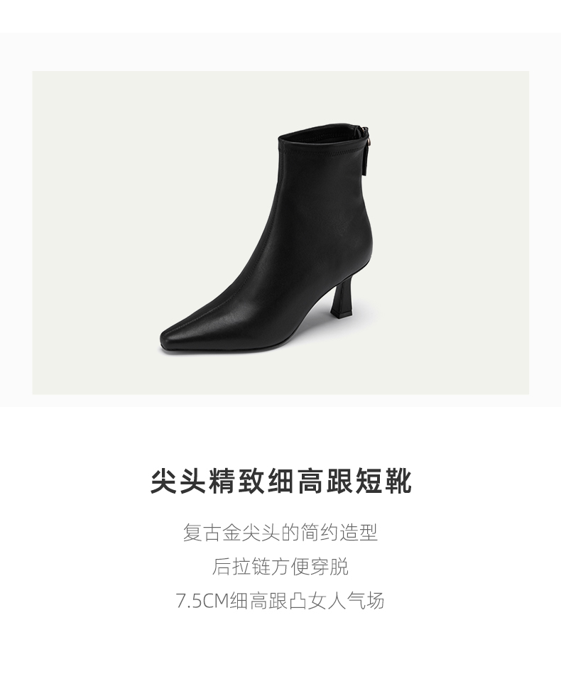 westory2022年秋冬新款尖头通勤高跟鞋短靴82711