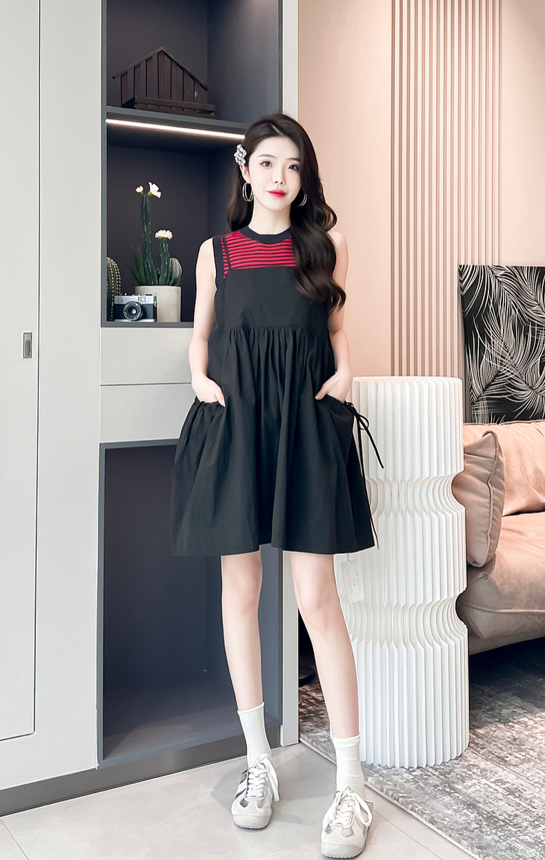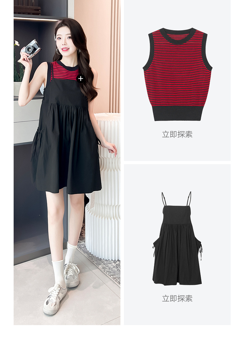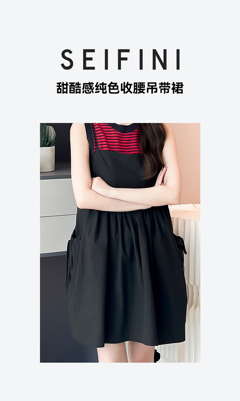 【严选】诗凡黎抽褶大口袋吊带连衣裙2024夏新款流行漂亮好看小众裙子SF6192191