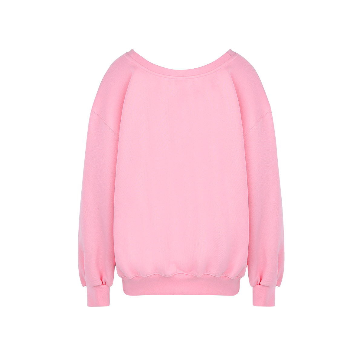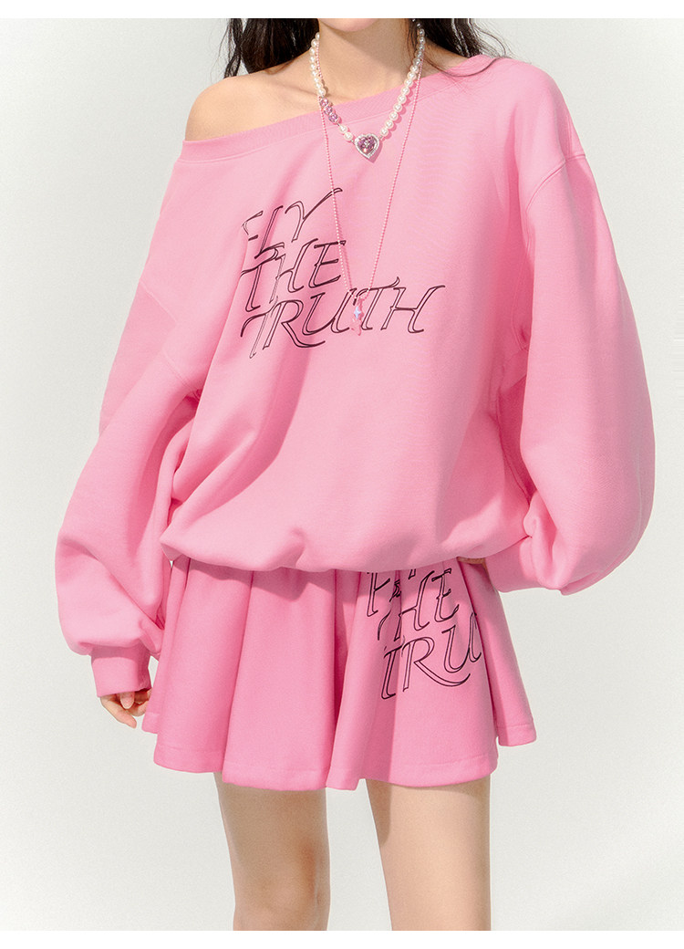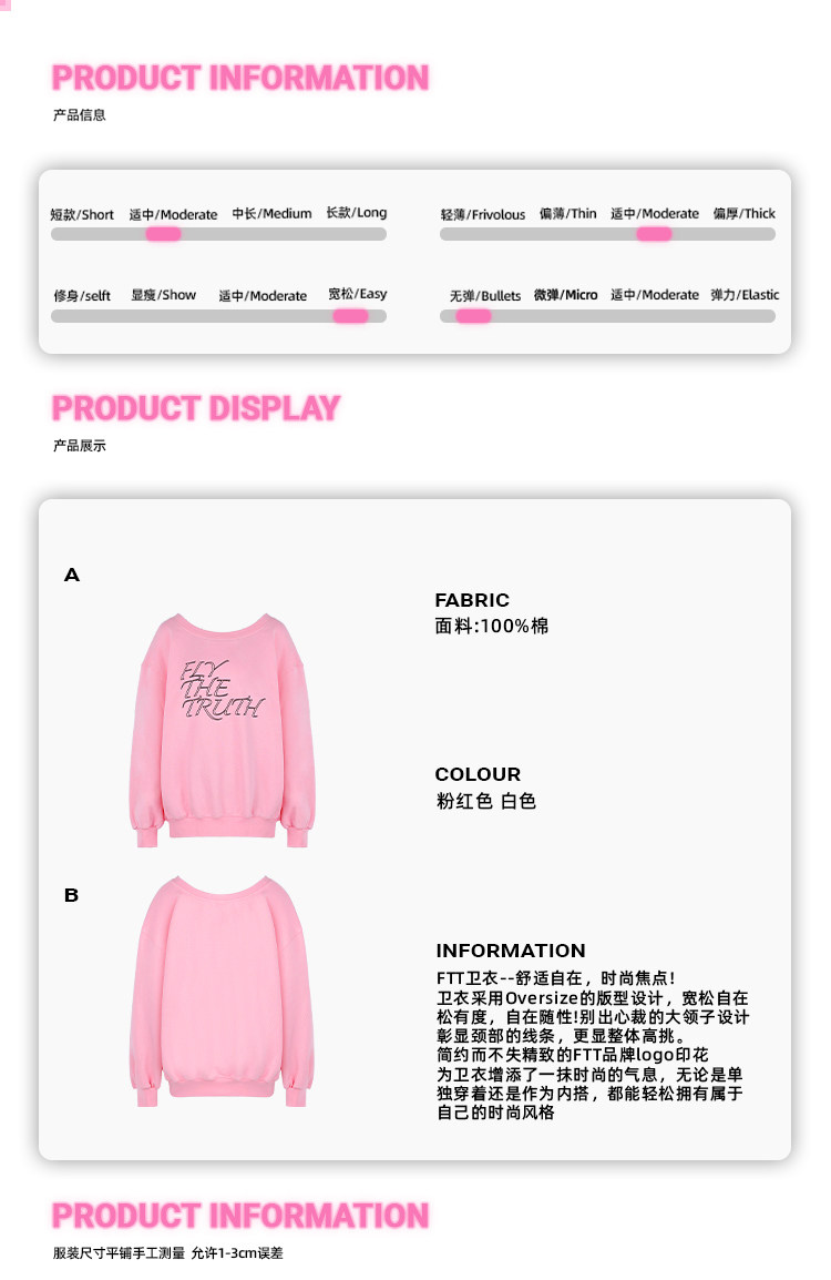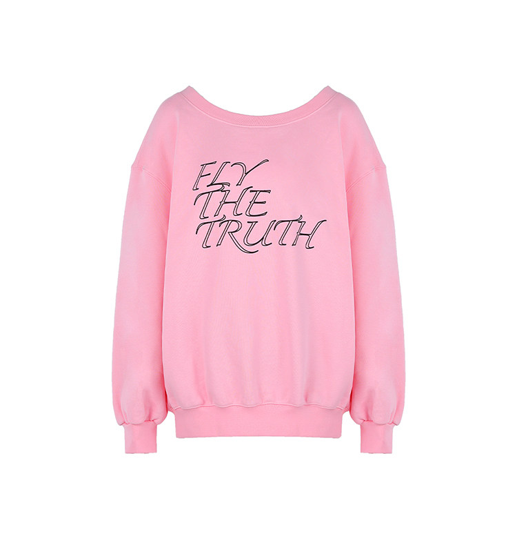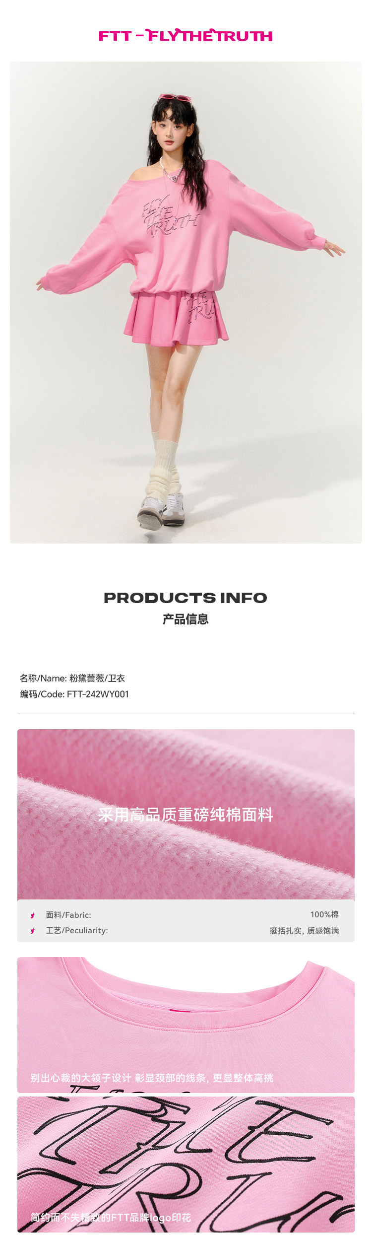 FTT FlyTheTruth 粉黛蔷薇 韩系半露肩卫衣秋季新款辣妹圆领上衣