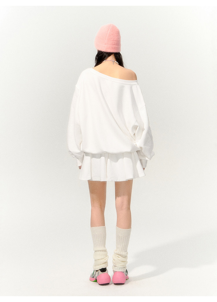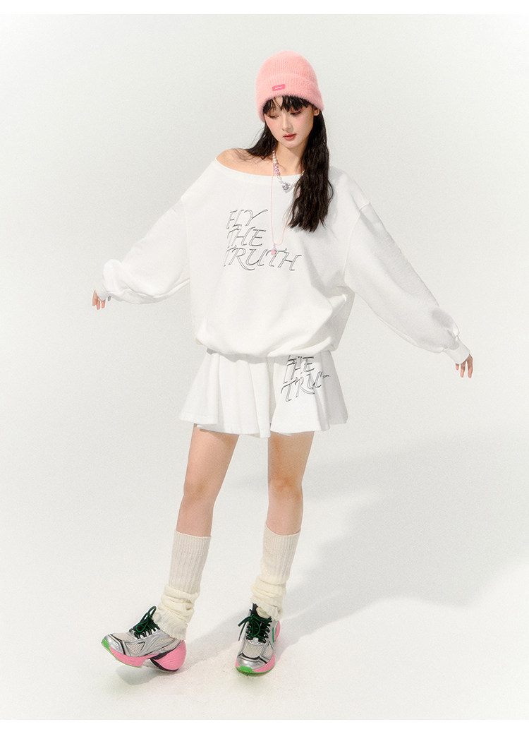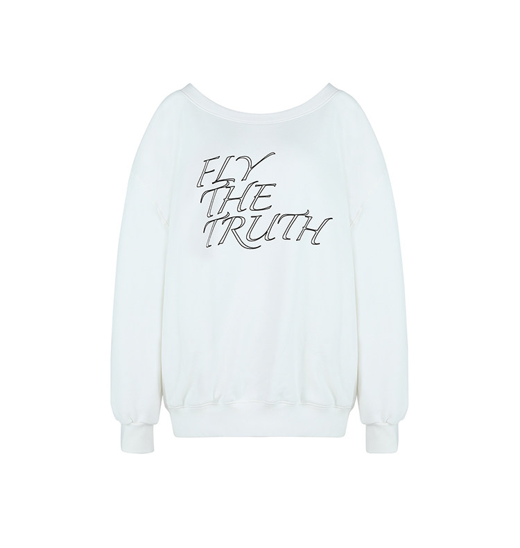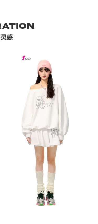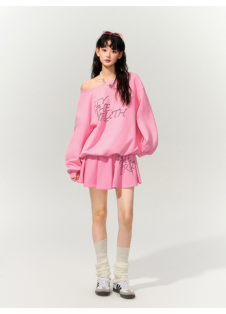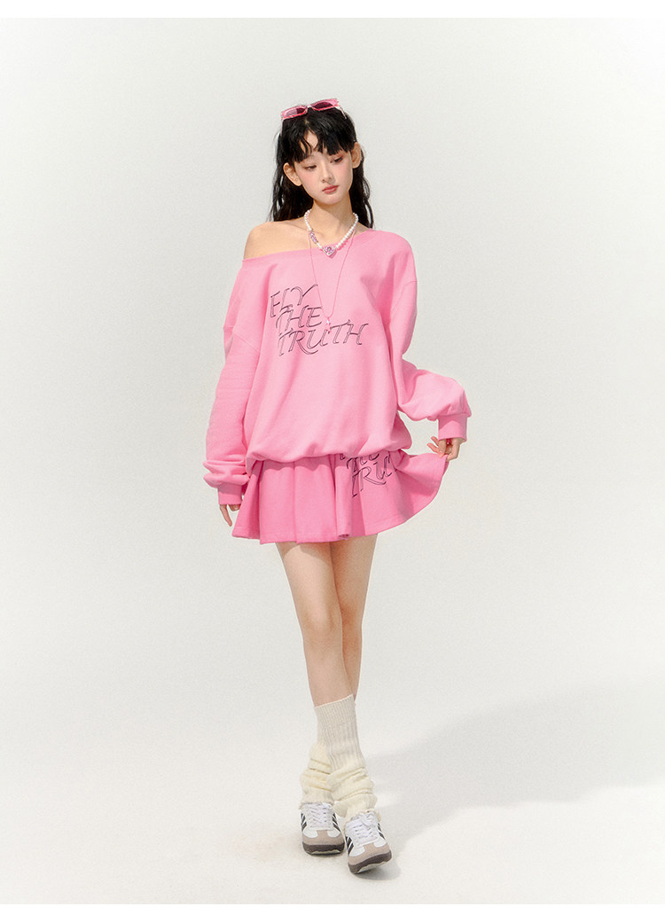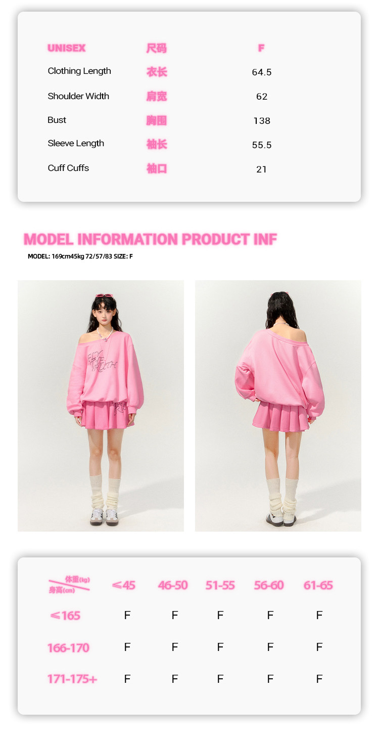 FTT FlyTheTruth 粉黛蔷薇 韩系半露肩卫衣秋季新款辣妹圆领上衣