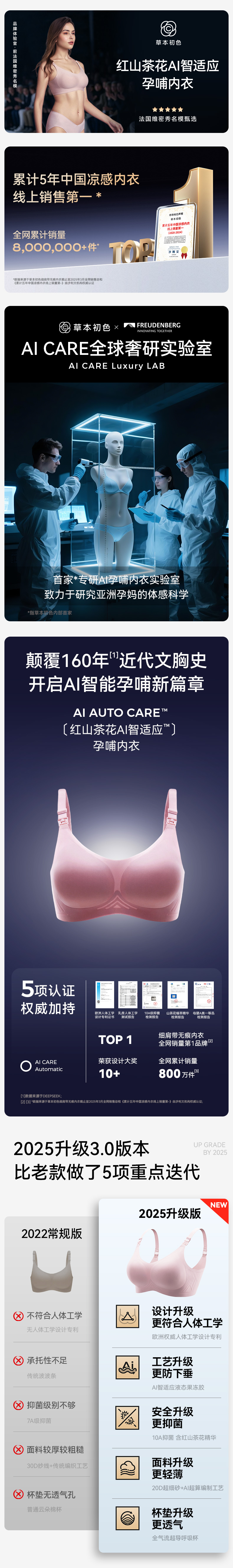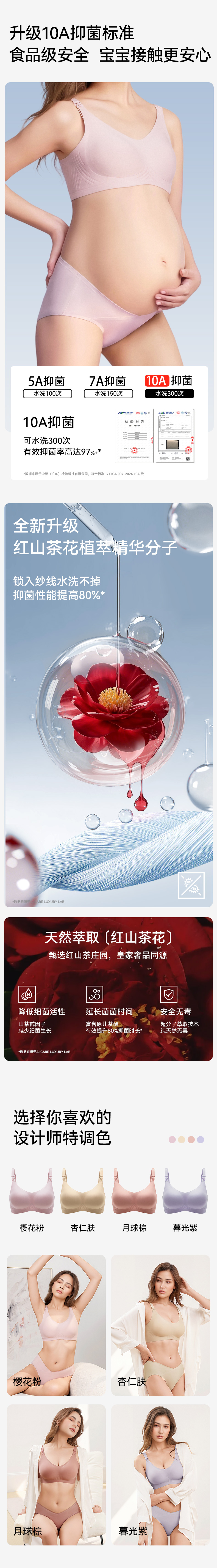 【草本初色】智能果冻胶防下垂孕妇哺乳内衣红山茶花聚拢喂奶文胸SH