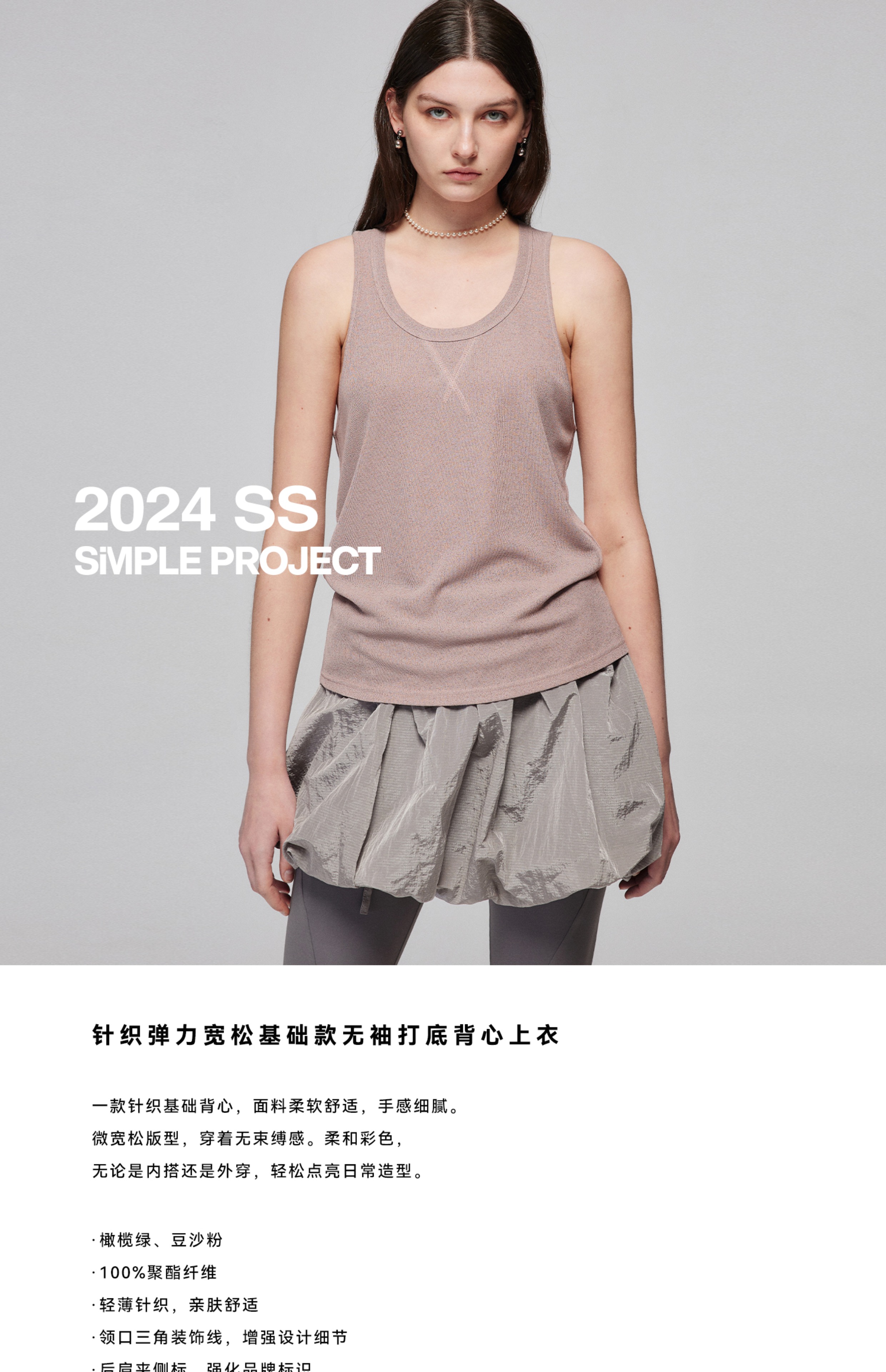 Simple Project/Y24105/针织弹力宽松基础款无袖打底背心