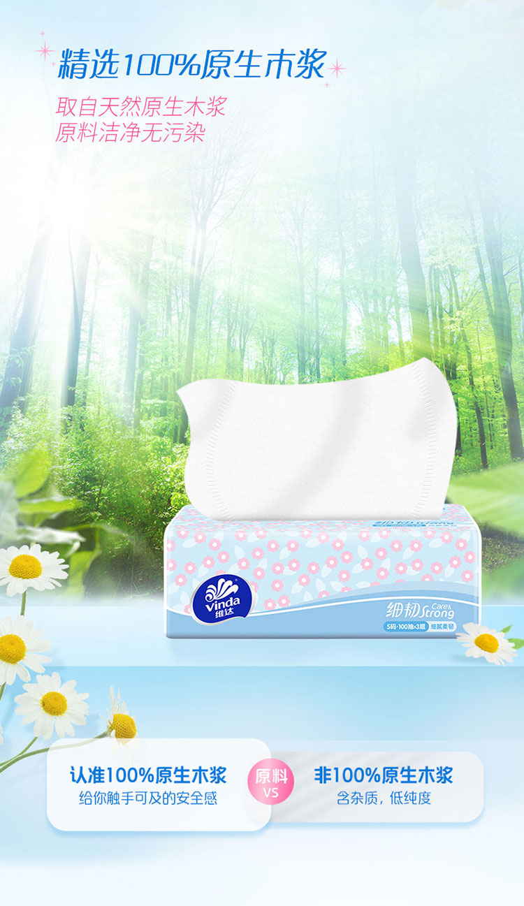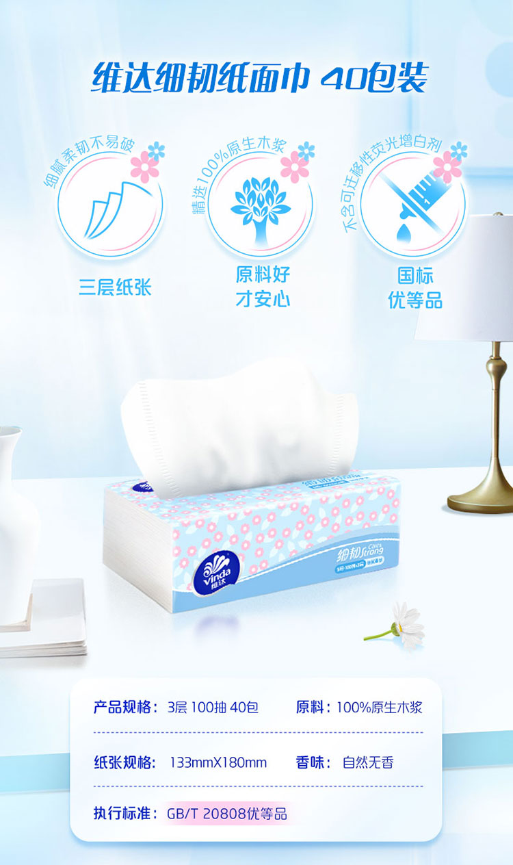 【官方包邮】维达细韧抽纸S码3层100抽40包箱装(自然无香)