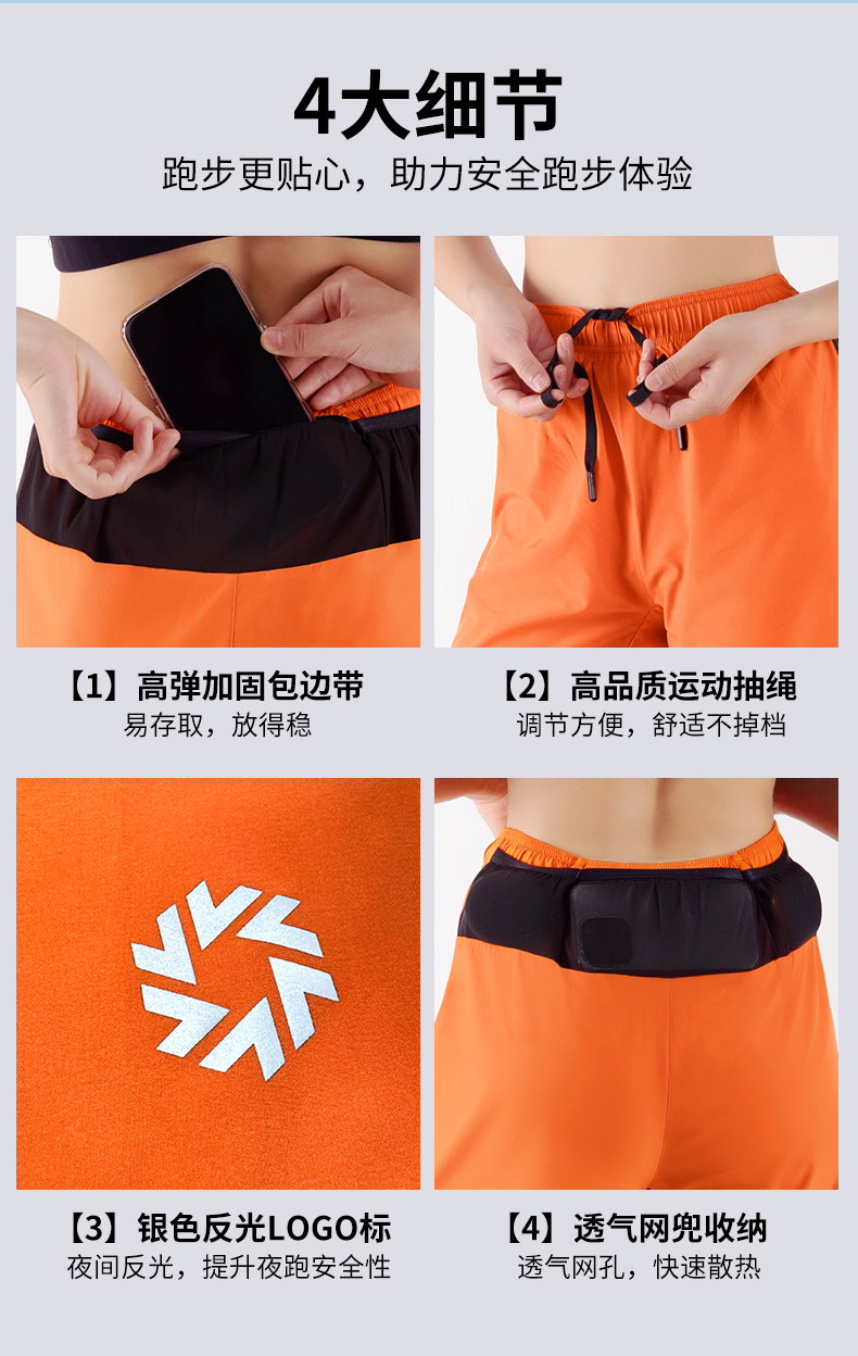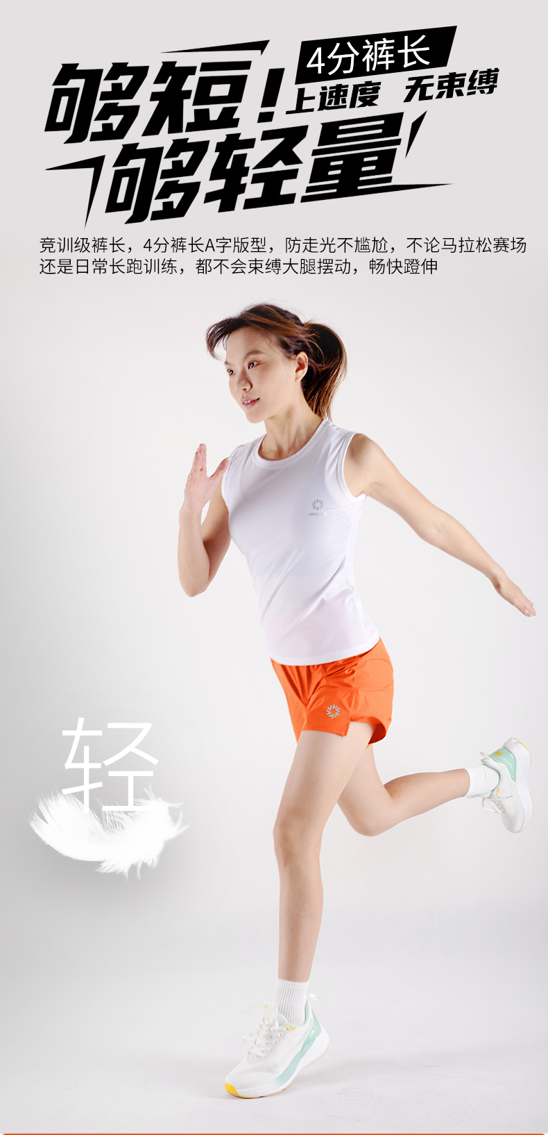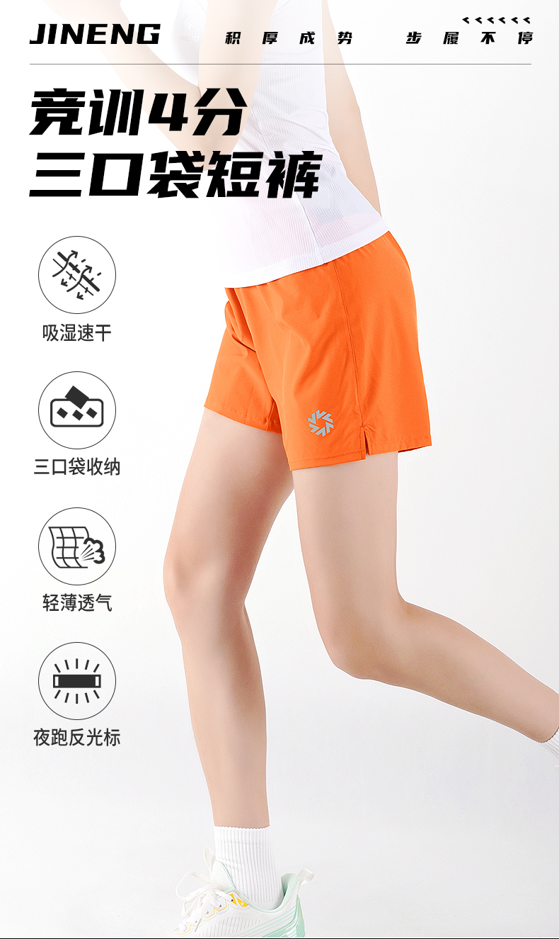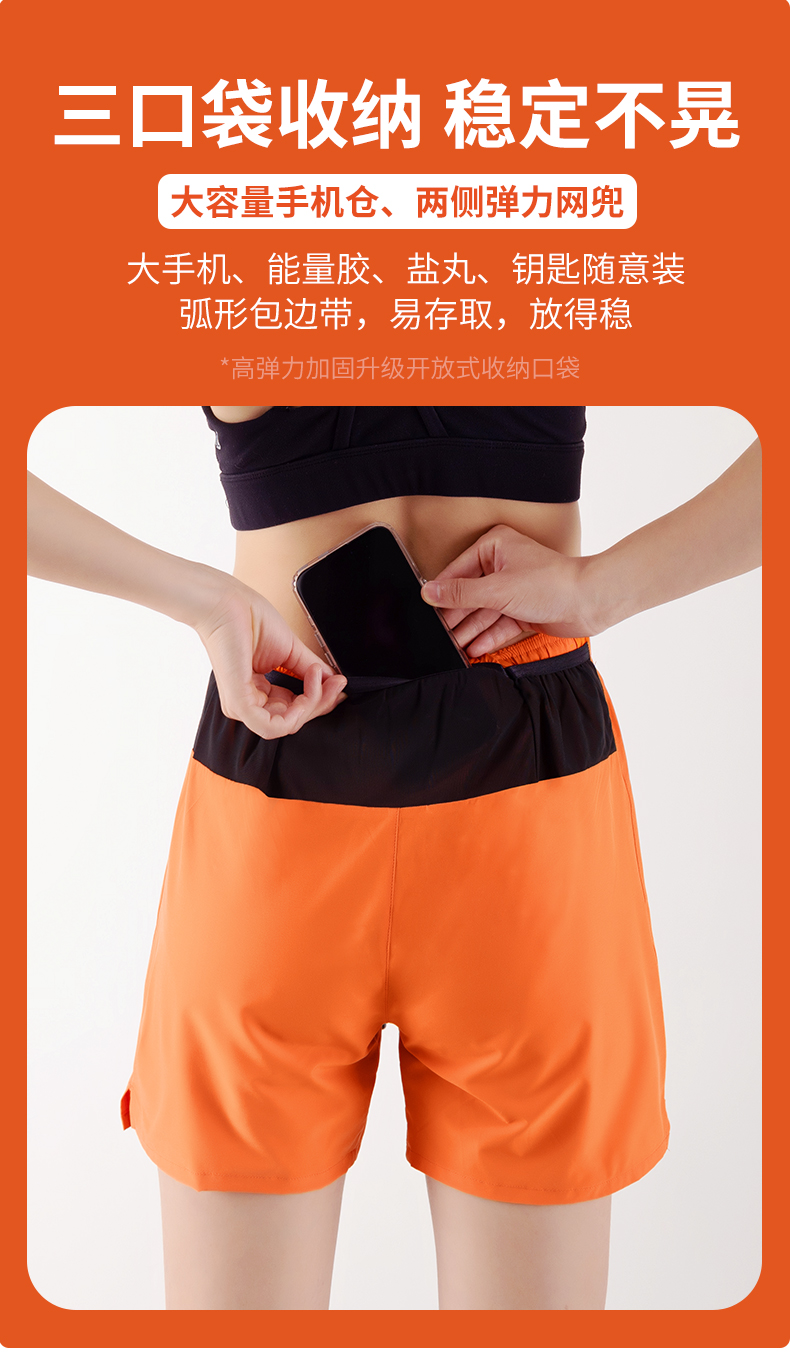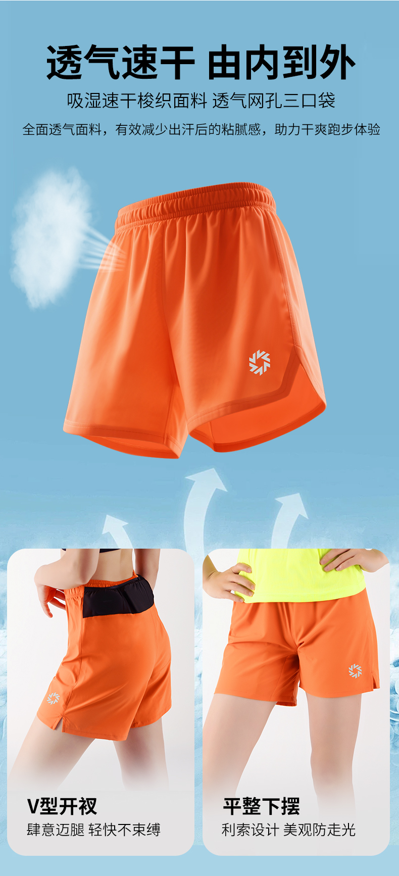 积能四分速干跑步短裤男女三口袋竞速外穿夏轻薄透气健身运动短裤