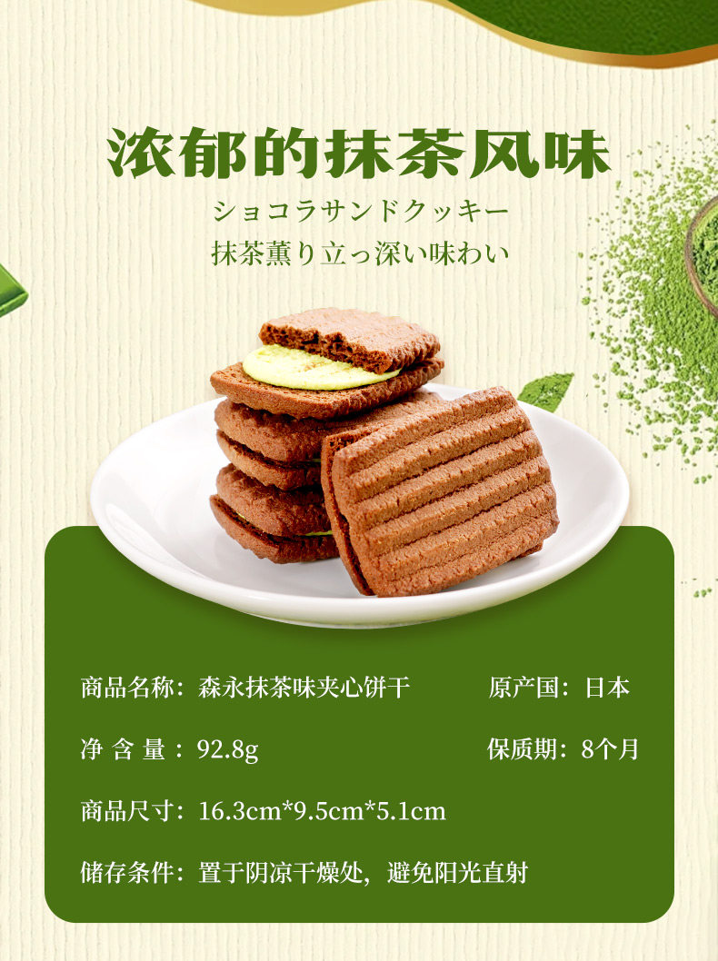 森永混合抹茶味夹心饼干92.8g 153024 浓郁的抹茶风味