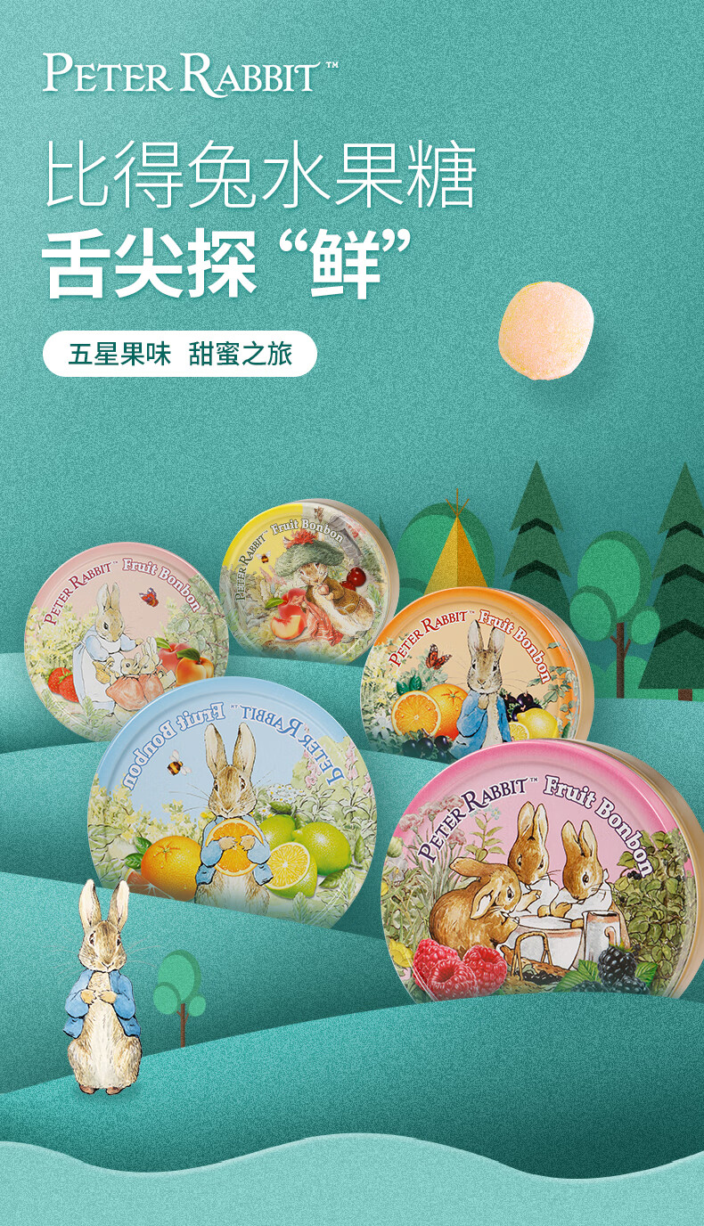 比得兔啵啵双味/柑橘味果汁糖果150g 多重惊喜层次分明清新甜美果味 060837-3/060837-2