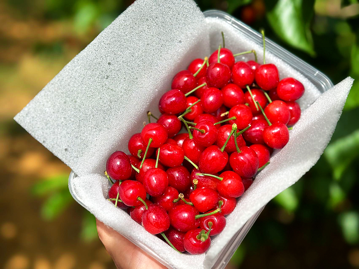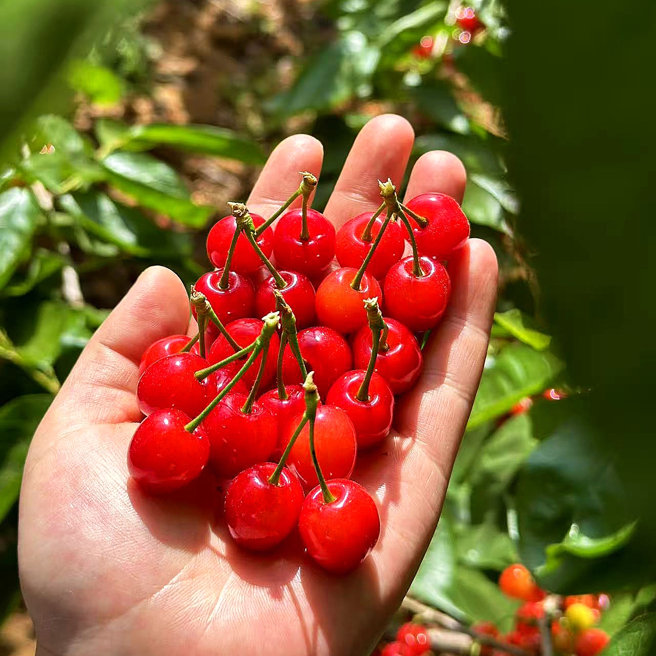 昼夜温差很大,所以这里的玛瑙红小樱桃口感也会更甜!实测可达20°糖度。