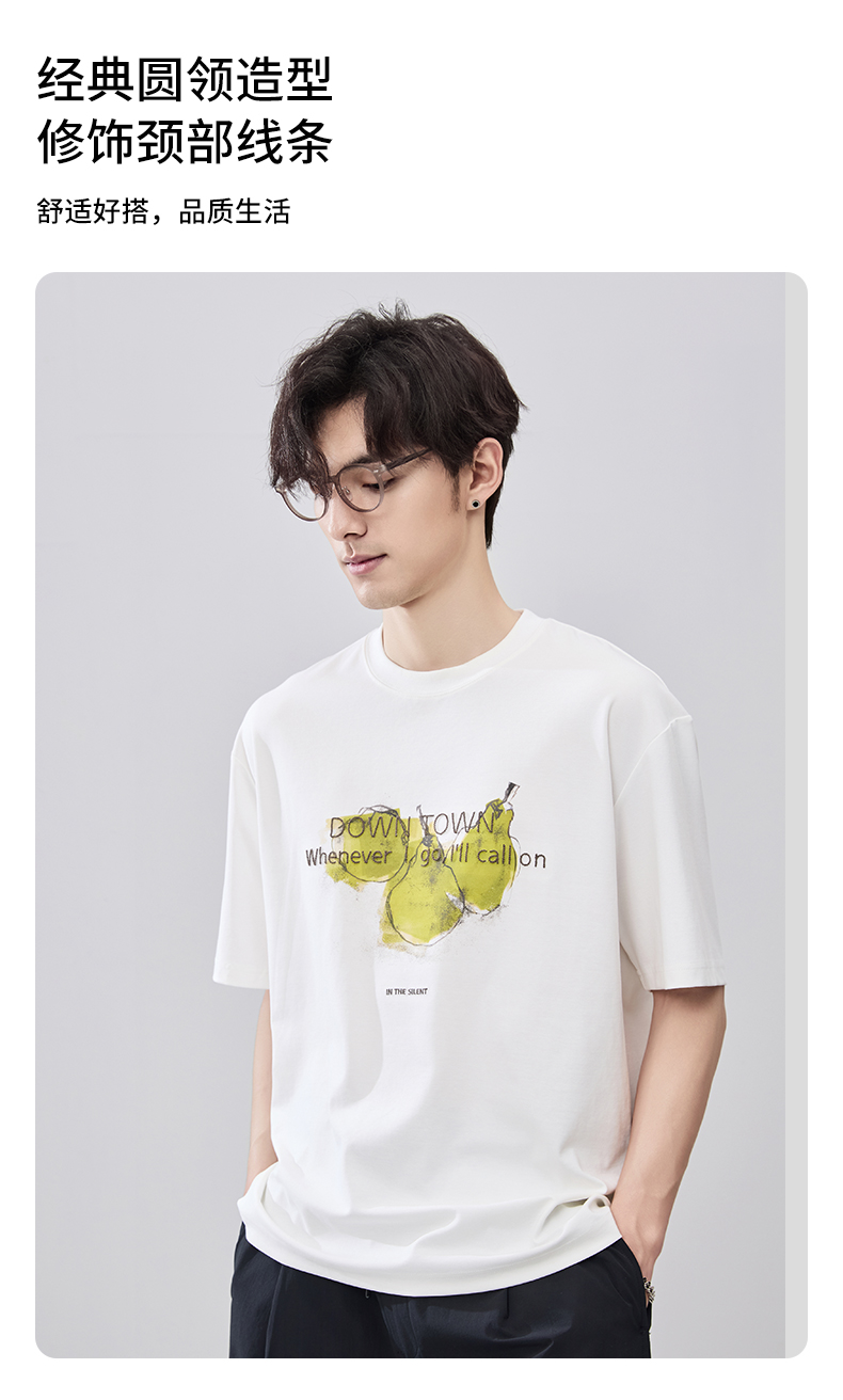 贝纳川夏季圆领立体绣花短袖T恤ECF214010