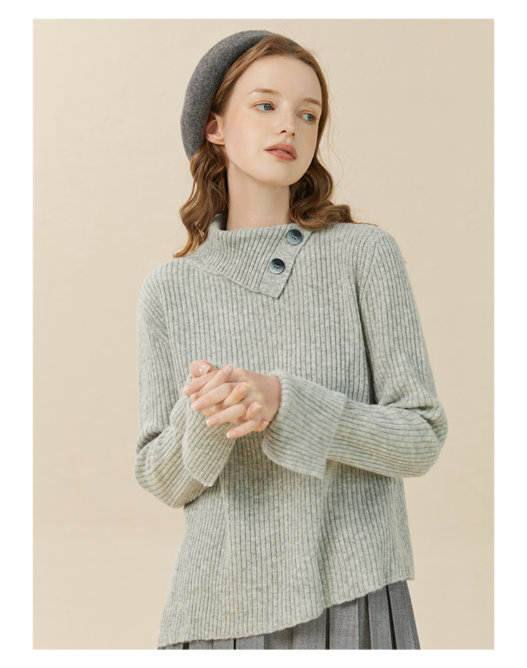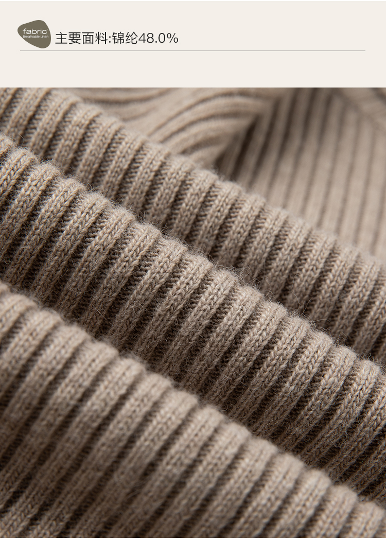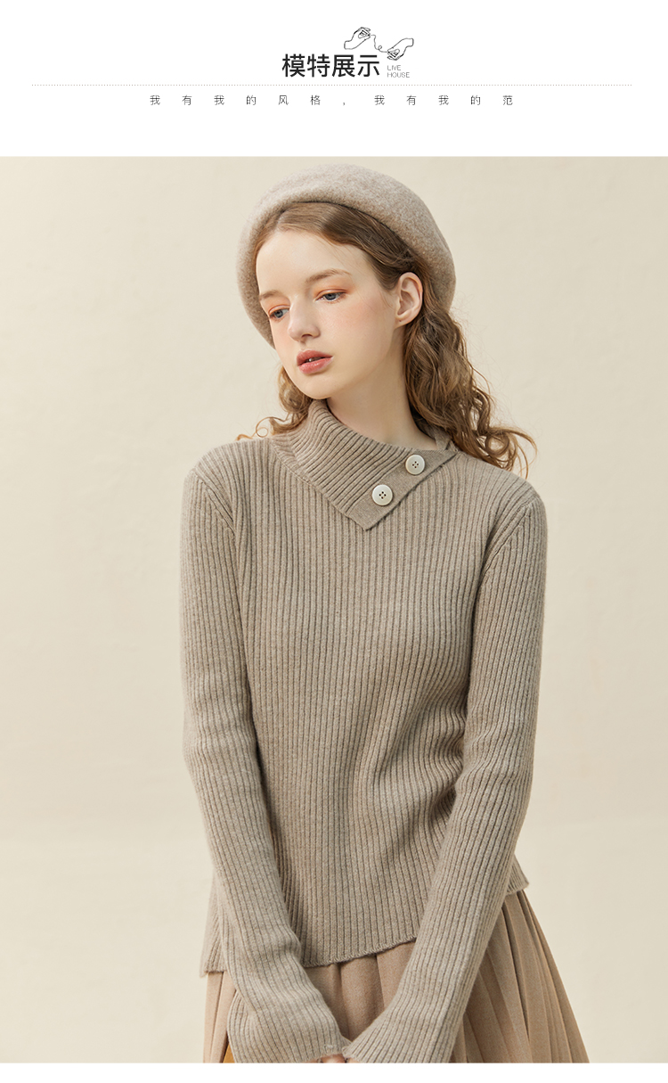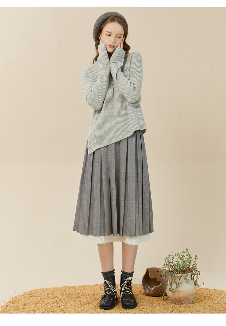 famecoco范可儿坑条纹下摆不对称针织衫冬高弹羊毛上衣女F228DC011