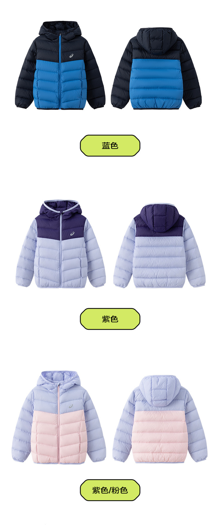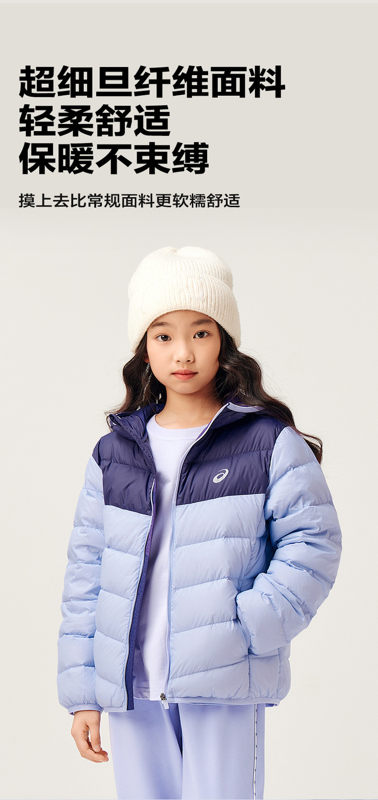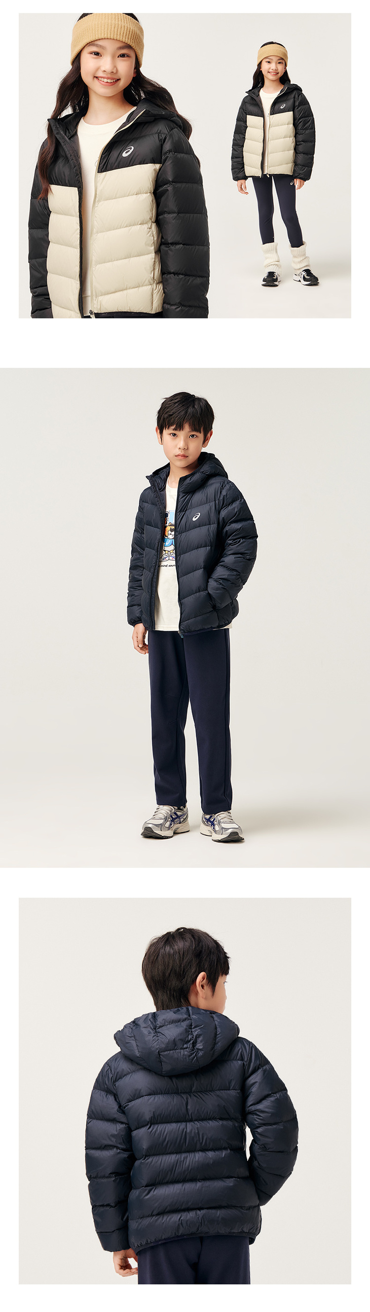 ASICS/亚瑟士童装中大童中性款百搭羽绒服2024时尚基础轻薄羽绒服