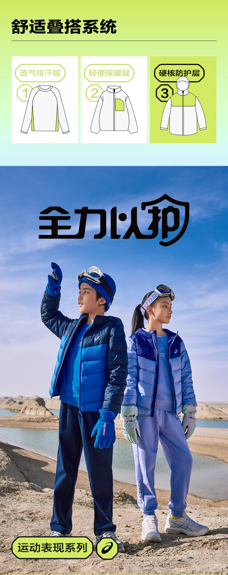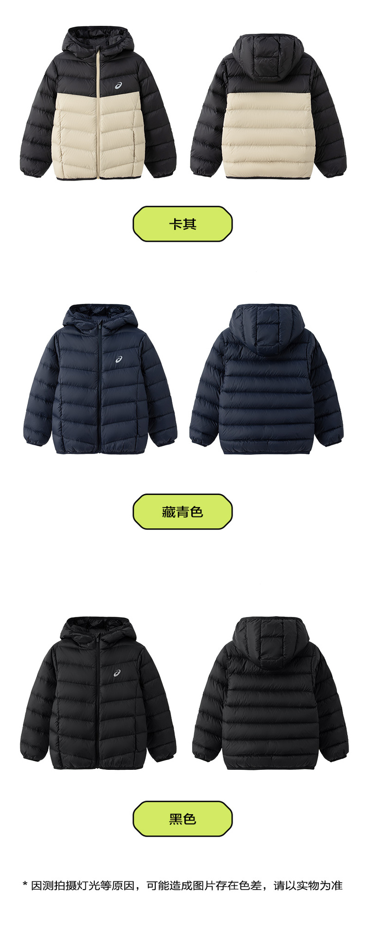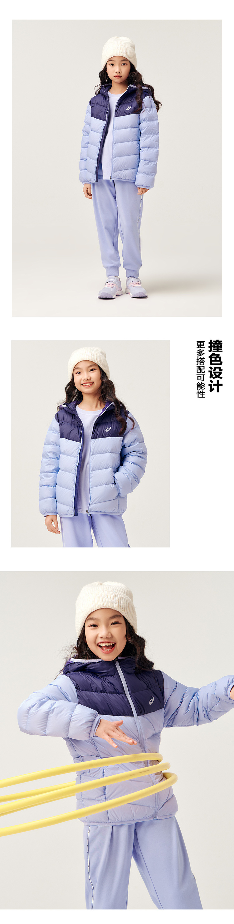 ASICS/亚瑟士童装中大童中性款百搭羽绒服2024时尚基础轻薄羽绒服