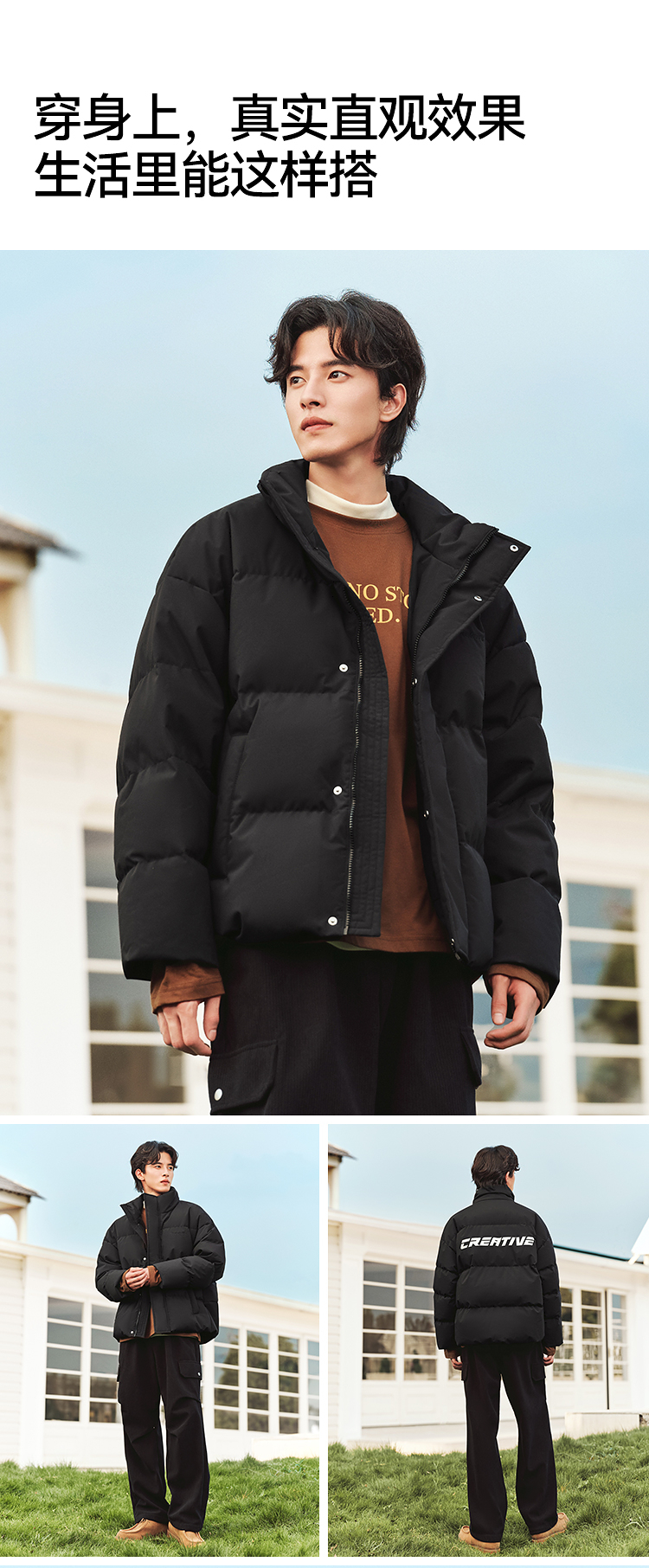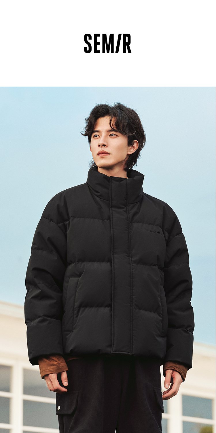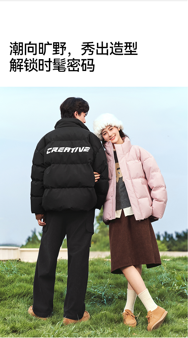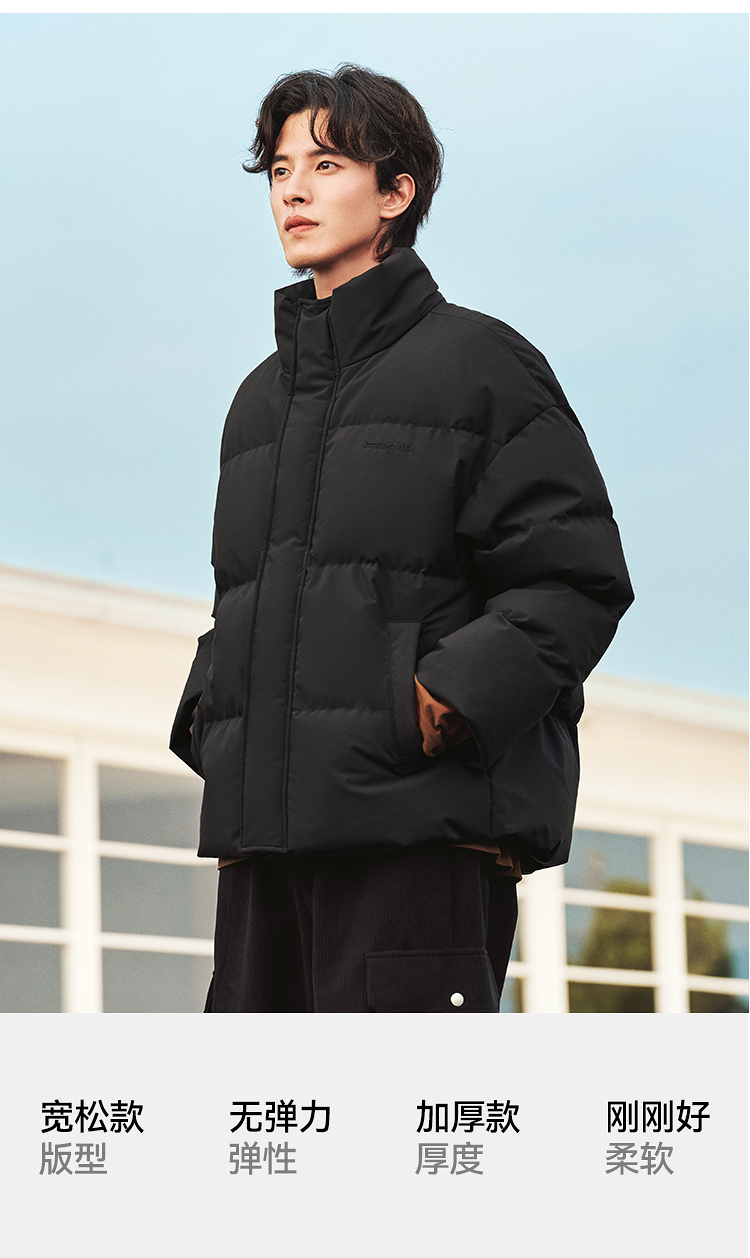 森马羽绒服男冬季新款时尚撞色肌理印花情侣面包服厚款外套潮