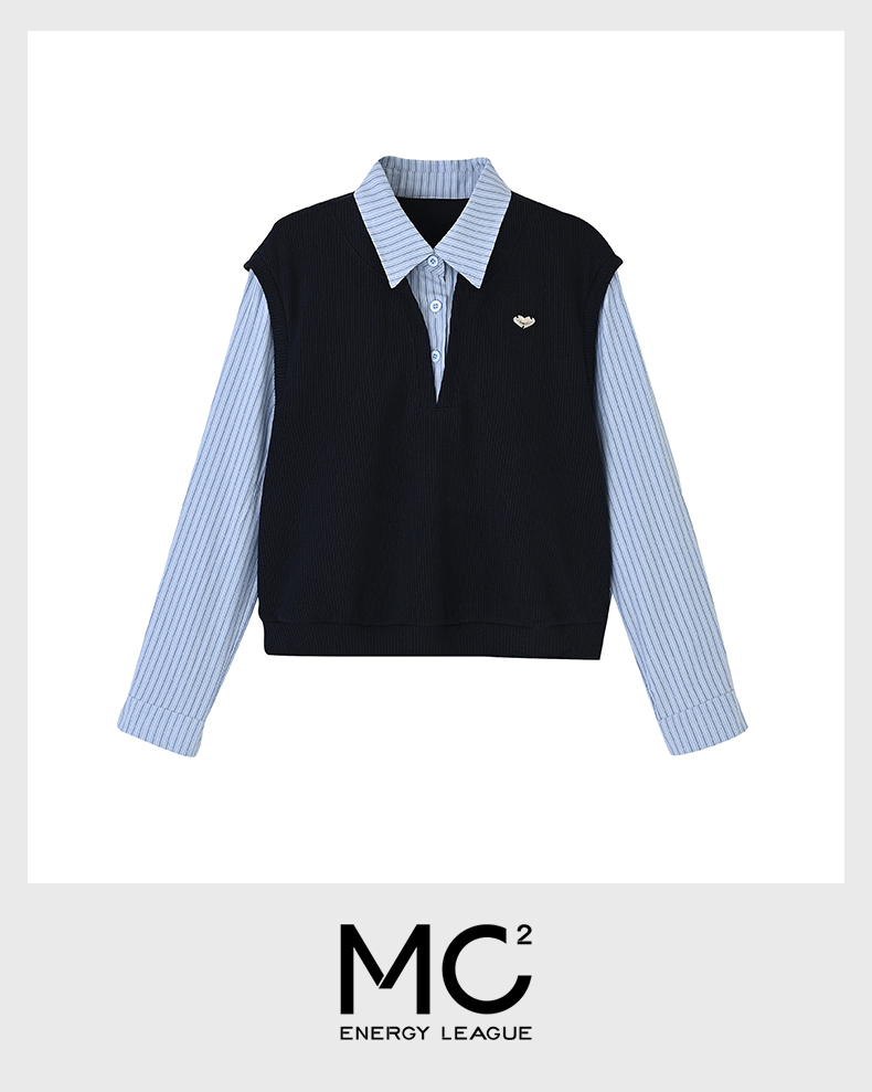 mc2连帽开v假两件收腰款T恤女装春秋季新款