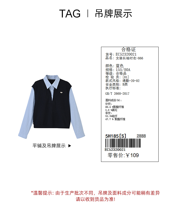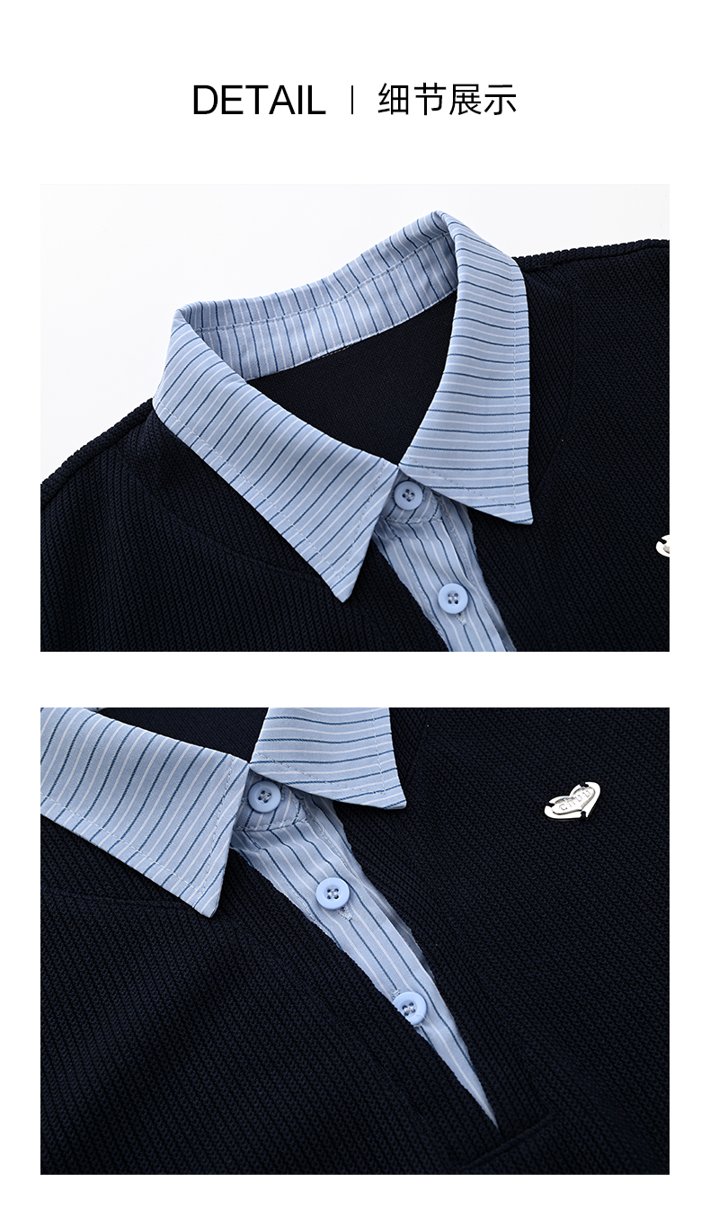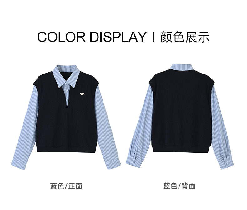 女装翻领配毛织拼接假两件衬衣-866C5232002