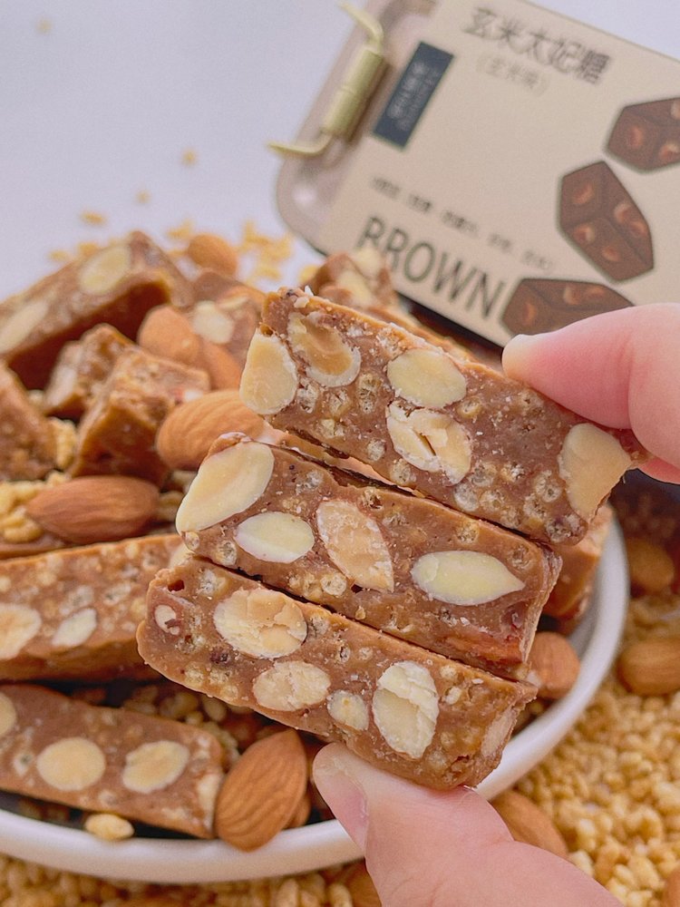 网红玄米太妃糖,不仅有大颗巴旦米,还特别增加了日式玄米,高品质玄米,比杏仁价格更高!