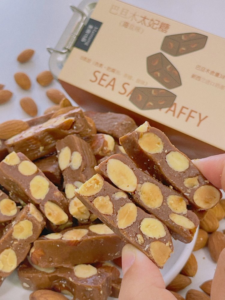 ✔无敌好吃的海盐巴旦木太妃糖,经典就是经典。一口封神!糖果中找坚果吃
