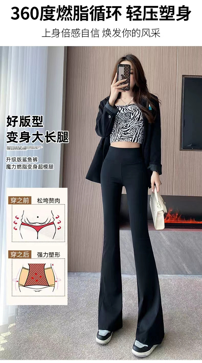 【收腹显瘦!高腰遮肚】加绒口袋喇叭裤女外穿秋冬季鲨鱼裤高腰收腹显瘦芭比裤运动瑜伽裤,高腰设计,展现你的曲线,潮流芭比范儿不再迷离。ry