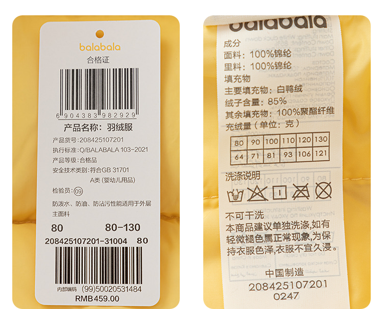 巴拉巴拉balaOne儿童羽绒服宝宝女童男童2025年冬季可爱三防外套