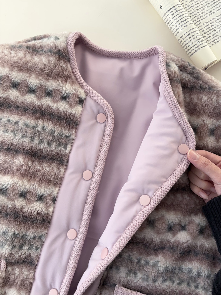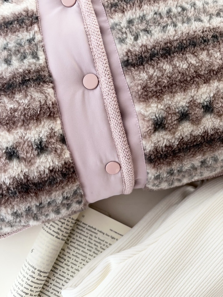 ✅双面小甜心费尔岛羊羔毛外套 一件棉服有着赛羽绒的品质! 高饱和色系自带高级感, ▪️A面三防科技净色面 微雨溅不湿,寒风透不过,污渍一擦净 ▪️B面费尔岛渐变毛绒面 蓬松触感锁住体温,又轻又软又舒适 花一份钱get两件的高级感~