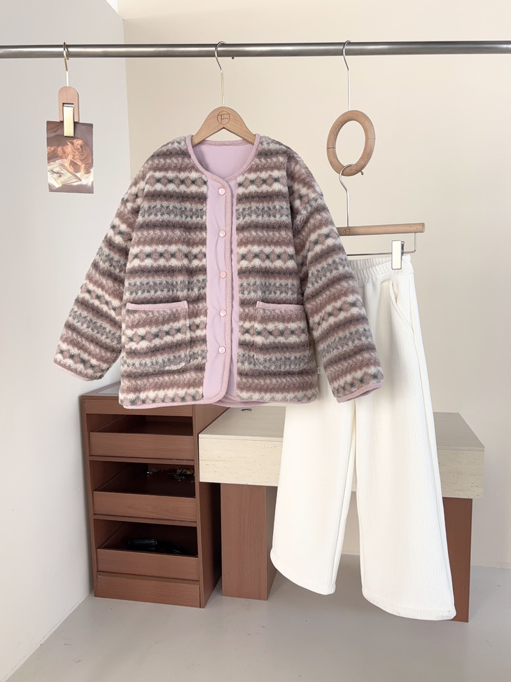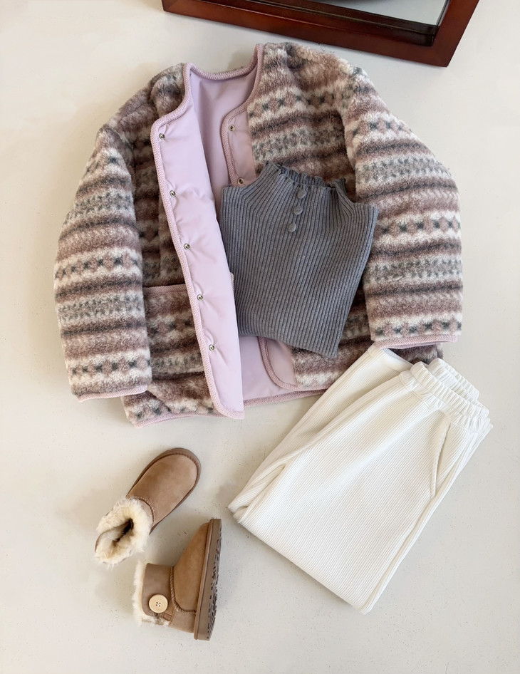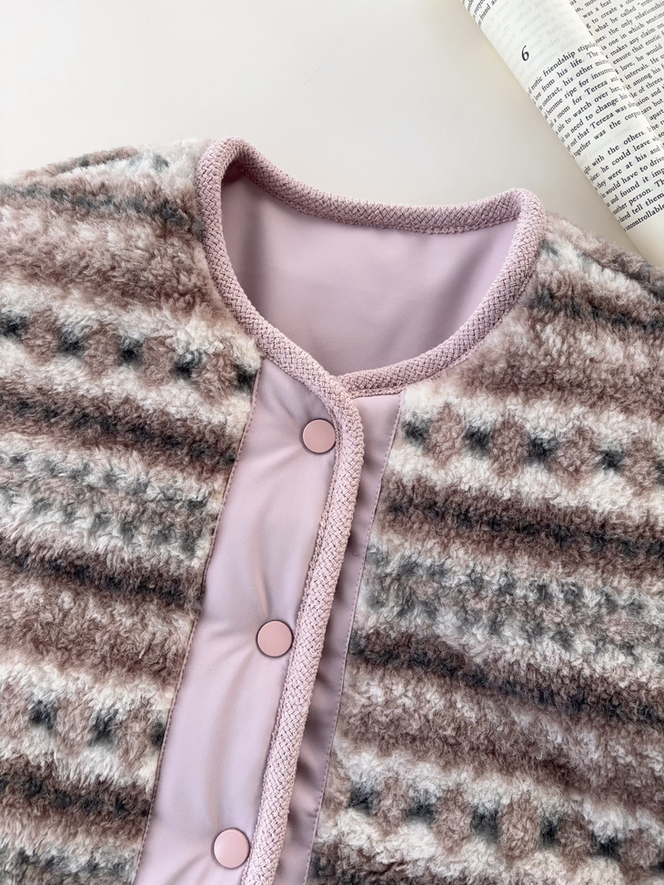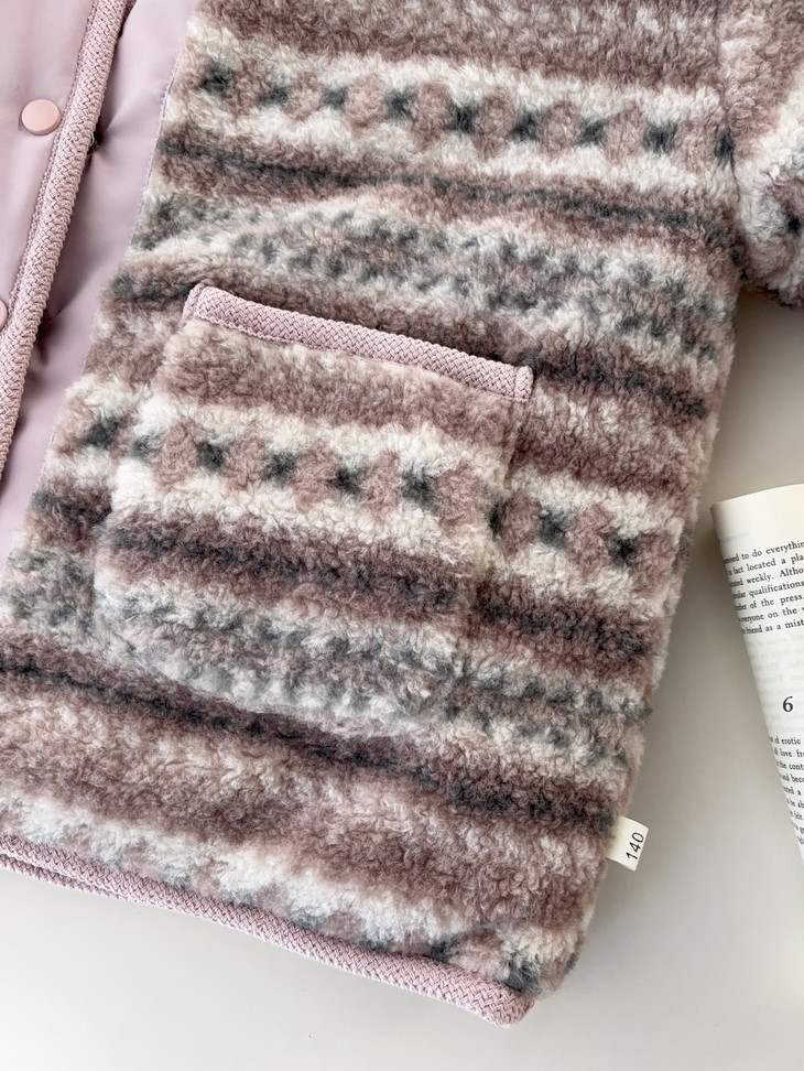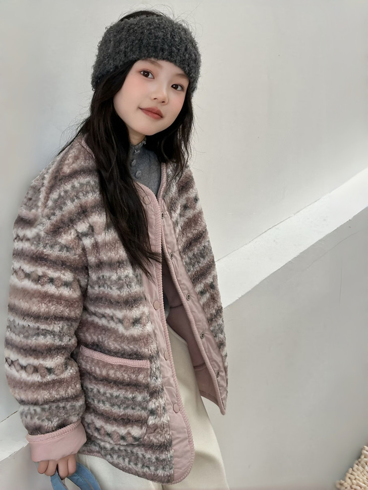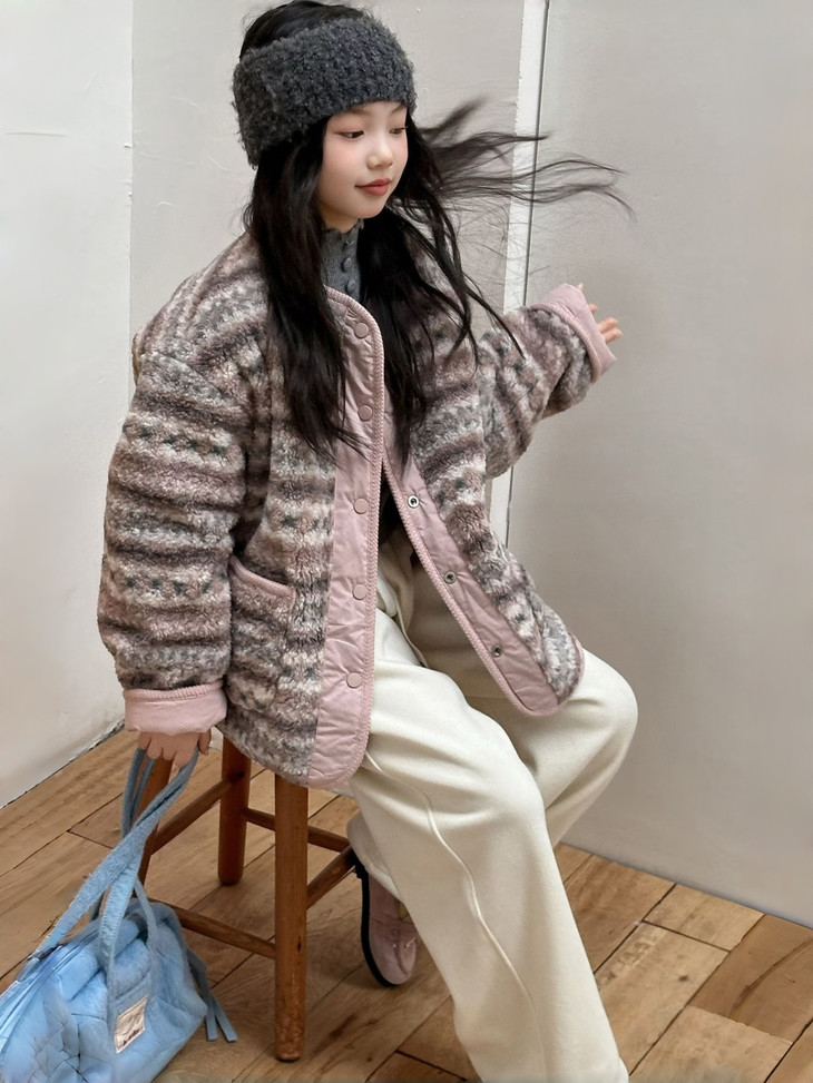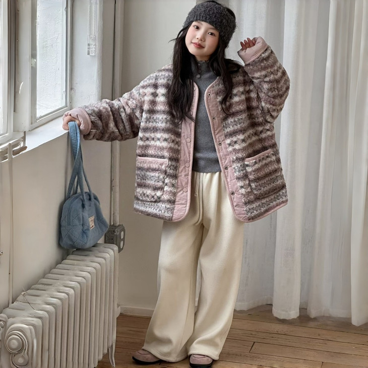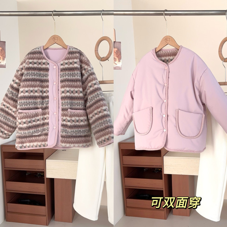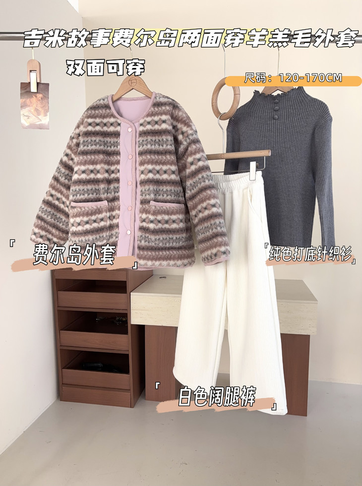超甜美的费尔岛羊羔毛外套,还是正反两穿, 工艺要求超高 触感细腻柔软 高能速热比冲锋衣暖和 蓬松绵密🔥高效蓄热抗湿冷 形成牢固恒温保暖 带给宝宝长久保护柔软舒服细腻又保暖,超适合女儿日常上学穿