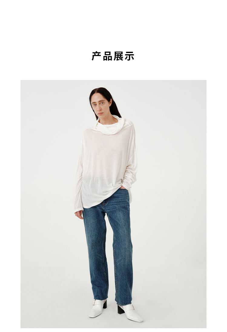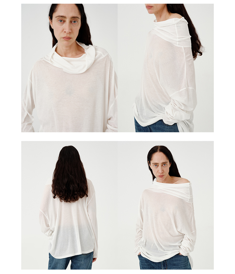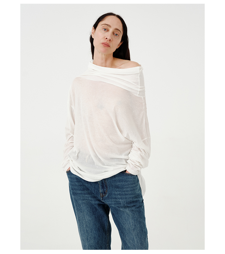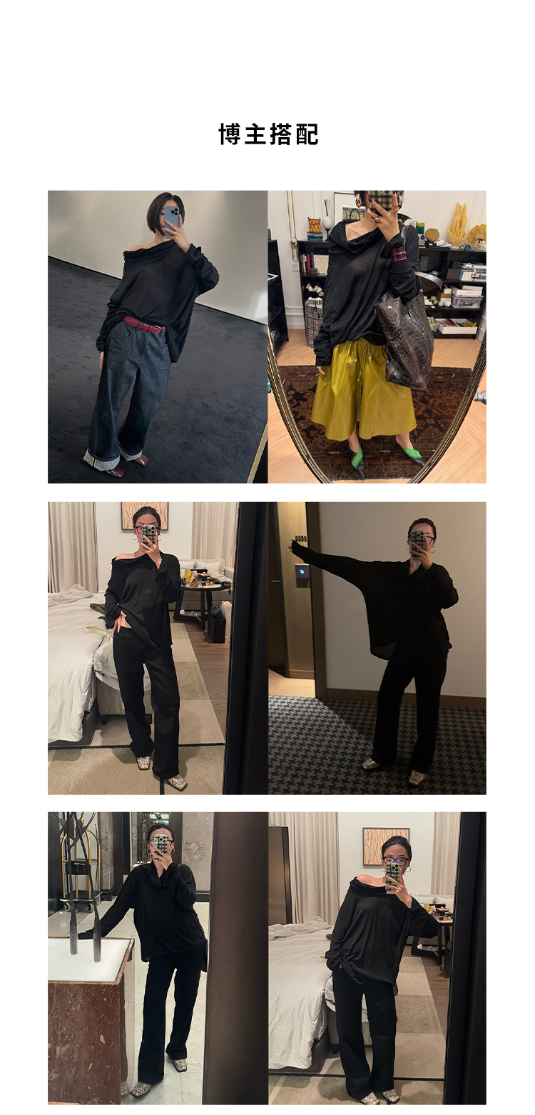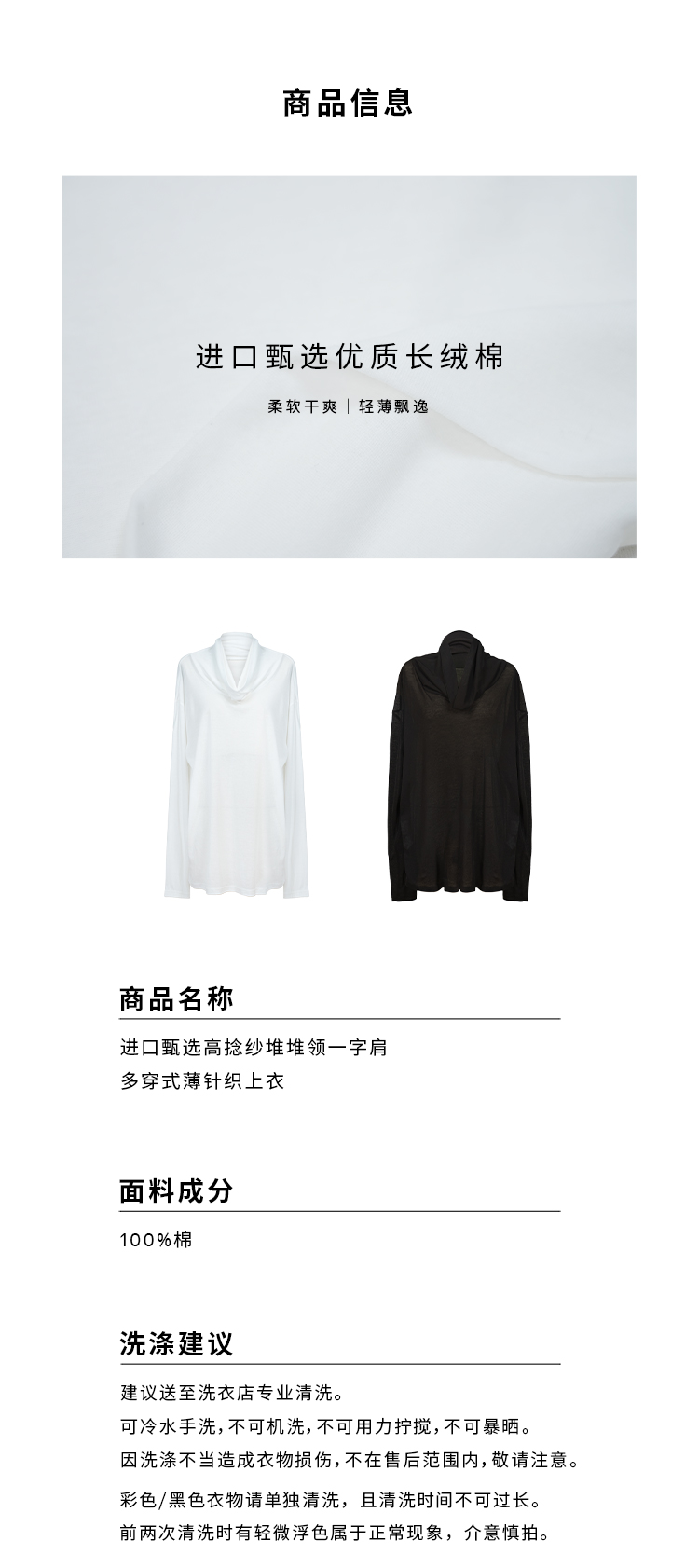 HIDEMI进口甄选高捻纱堆堆领一字肩多穿式薄针织上衣