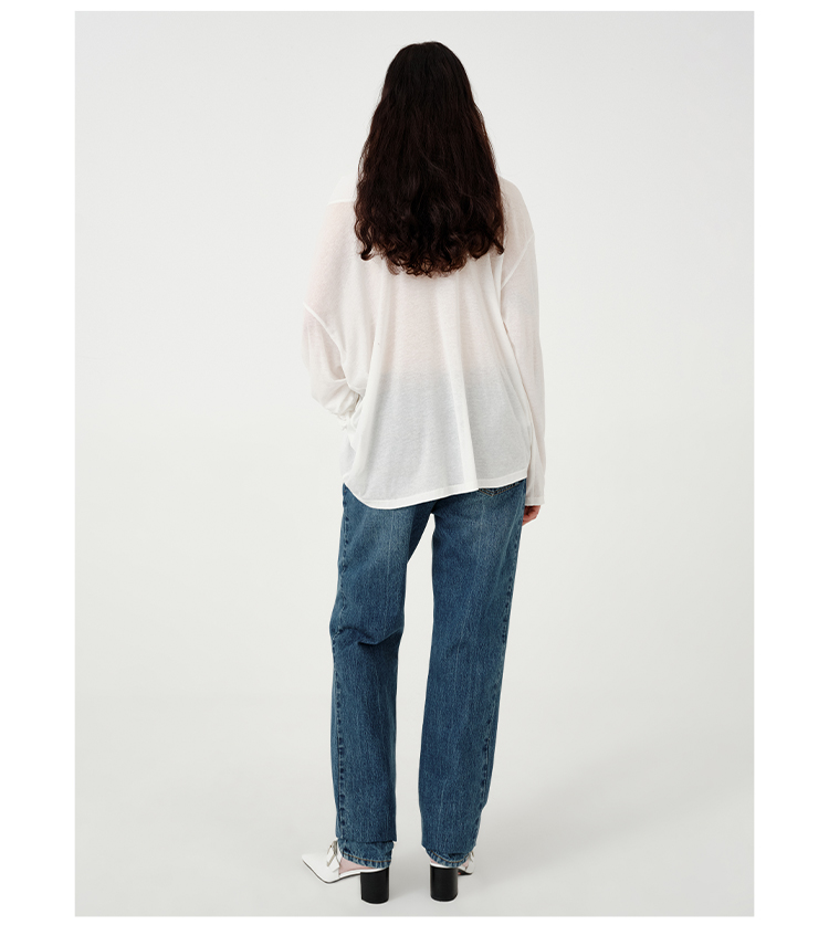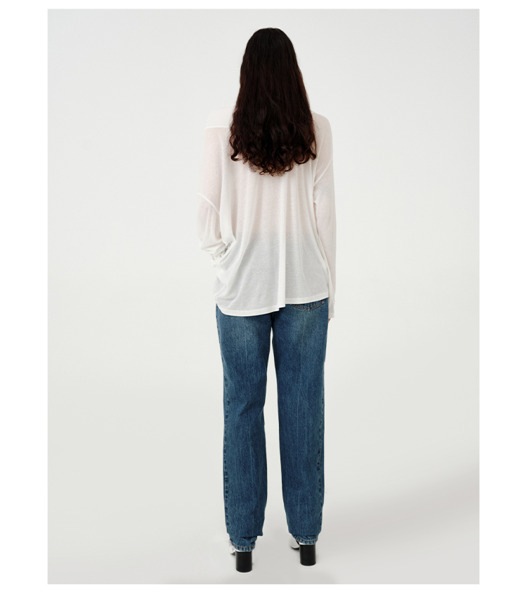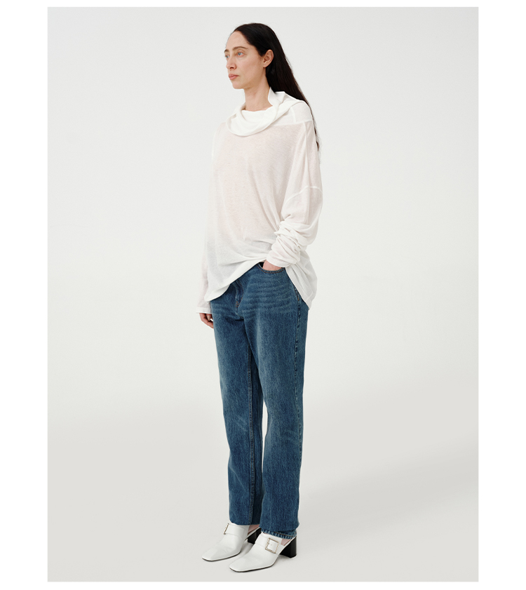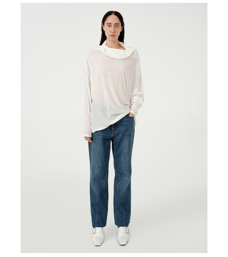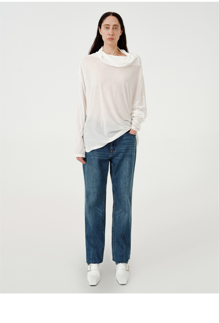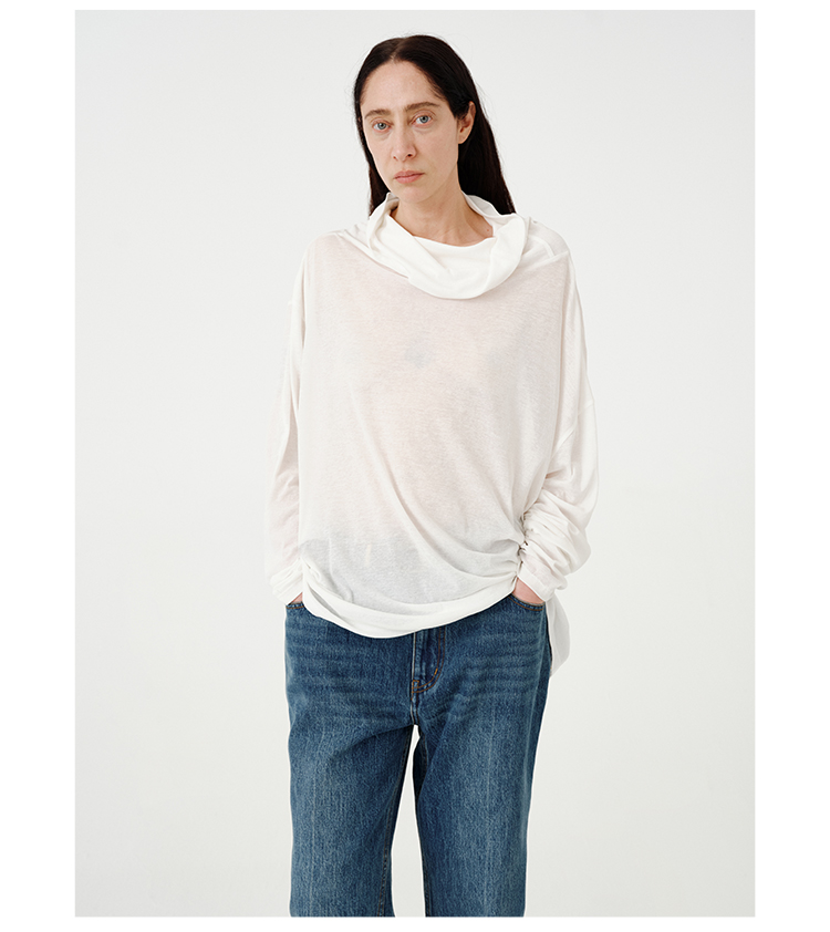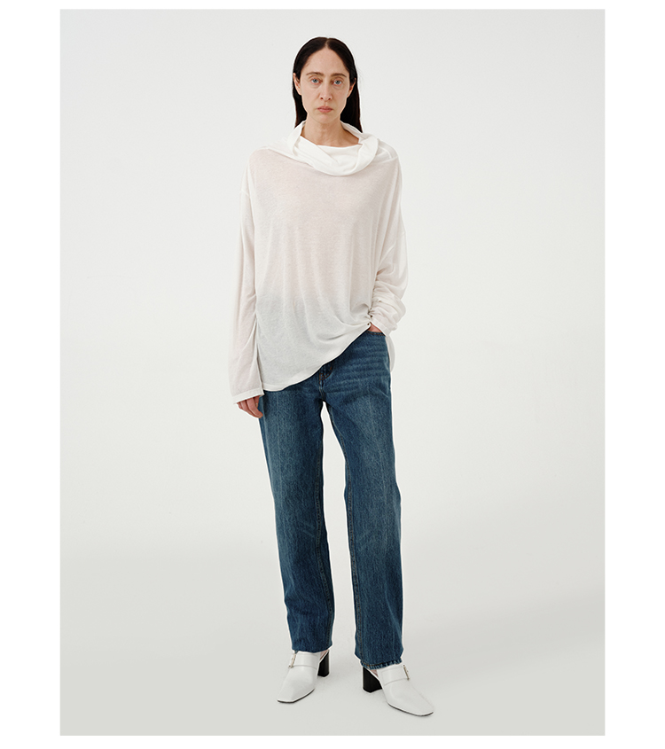 HIDEMI进口甄选高捻纱堆堆领一字肩多穿式薄针织上衣
