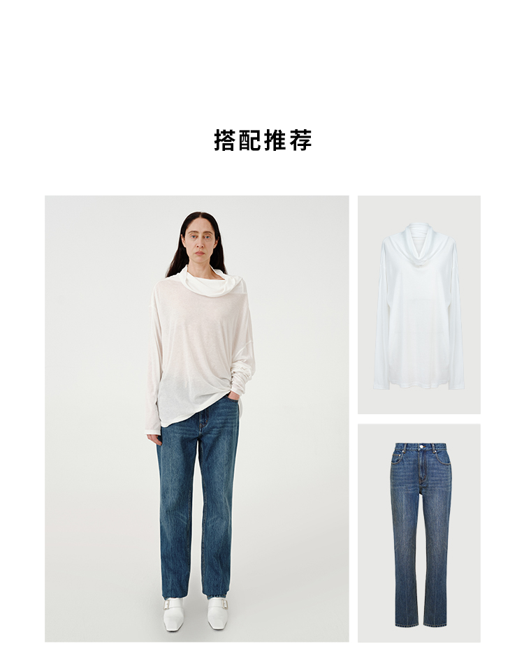 HIDEMI 亲肤柔润感涟漪堆堆领针织上衣 米色/藕粉色/灰蓝色