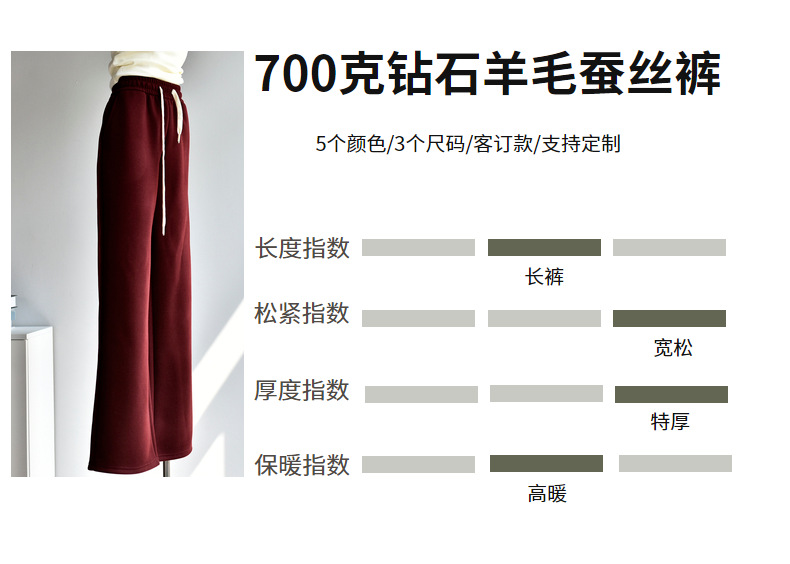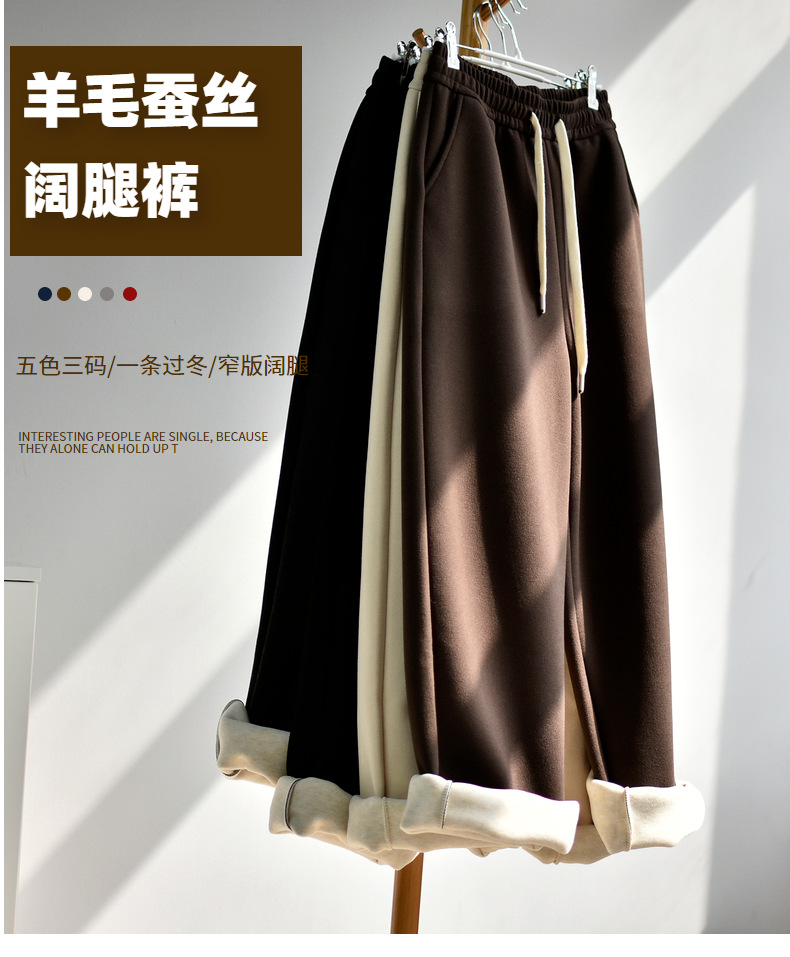 【700克羊毛蚕丝绒裤】冬季加厚加绒垂感蚕丝羊毛阔腿 软糯保暖休闲裤