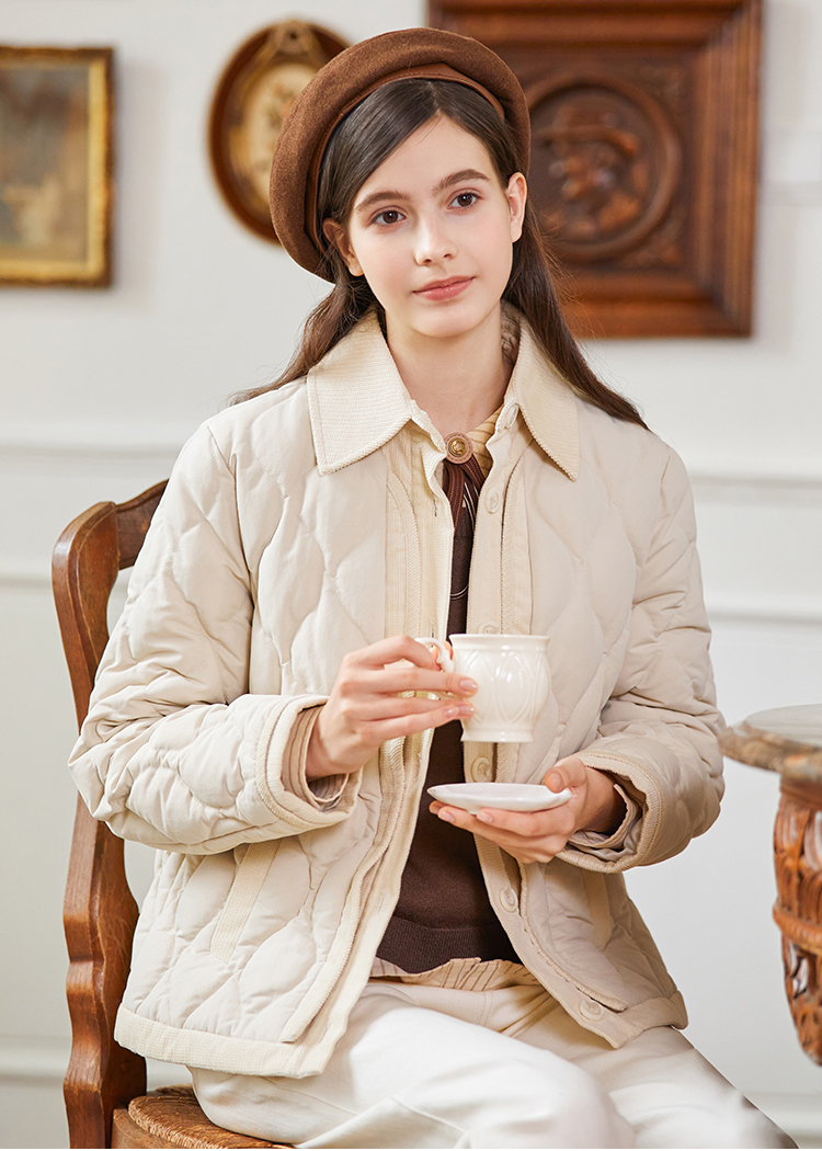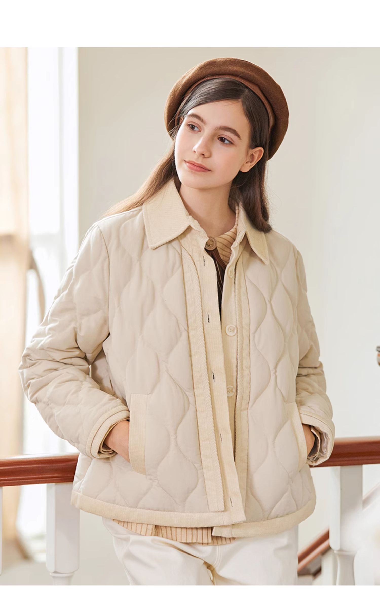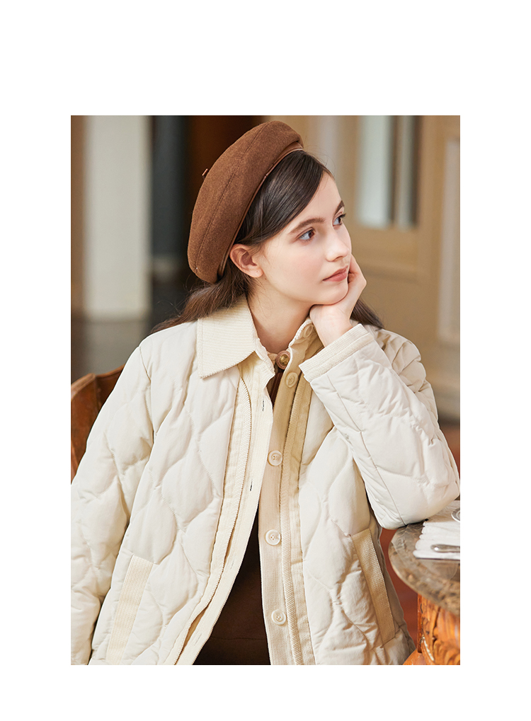 FAMECOCO范可儿衬衫式短款小众轻薄百搭羽绒服女冬款FAB8AJ035