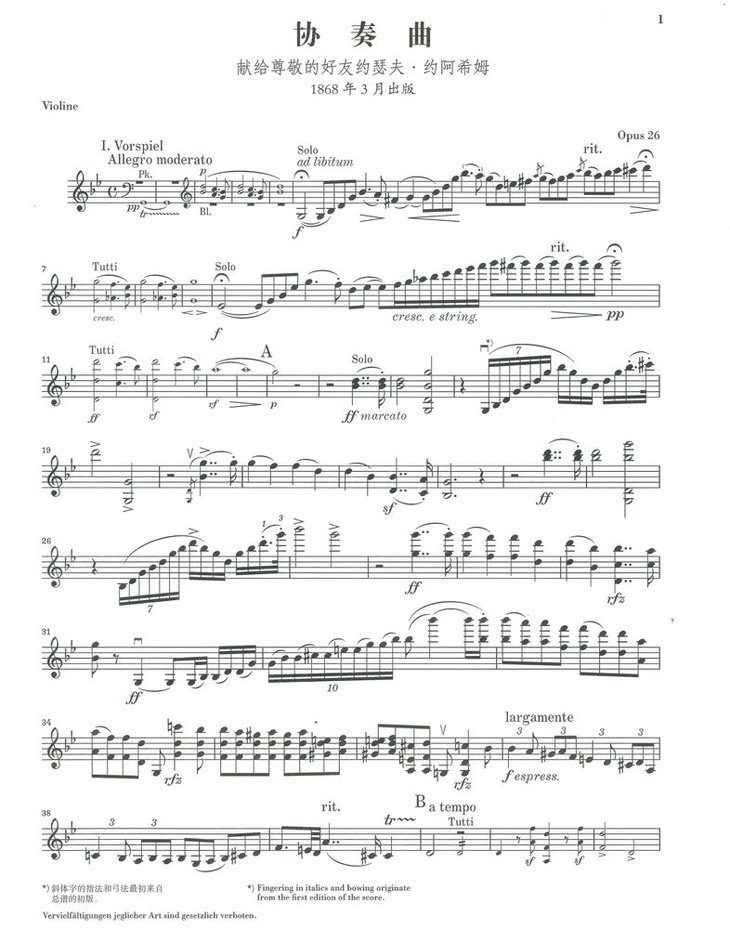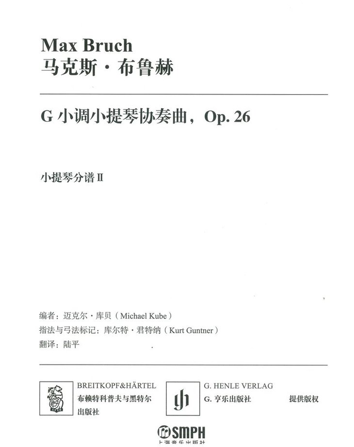 布鲁赫G小调小提琴协奏曲Op.26 钢琴缩谱与小提琴分谱