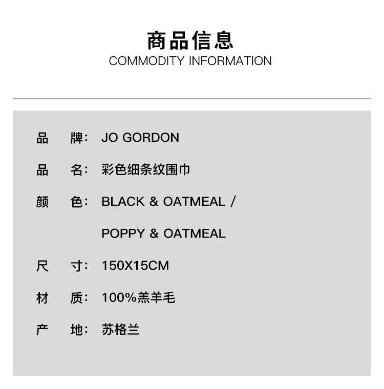 JO GORDON Smooth Narrow Stripe Scarf 羊羔毛彩色细条纹围巾