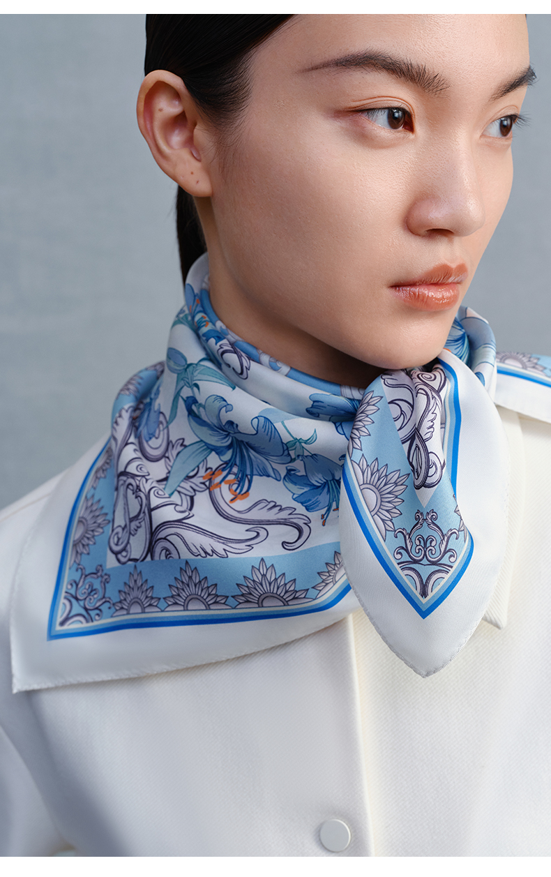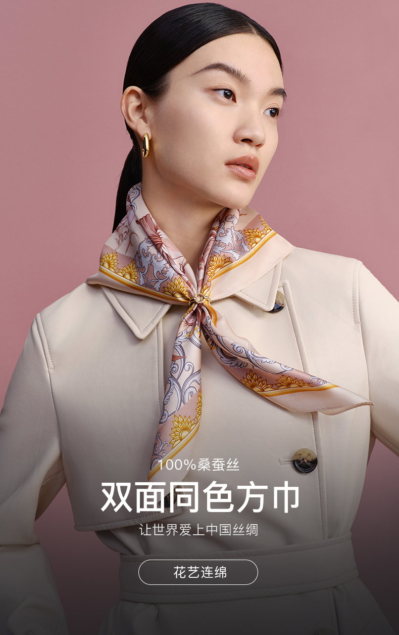 万事利“春和景明”63厘米双面印花真丝中方巾