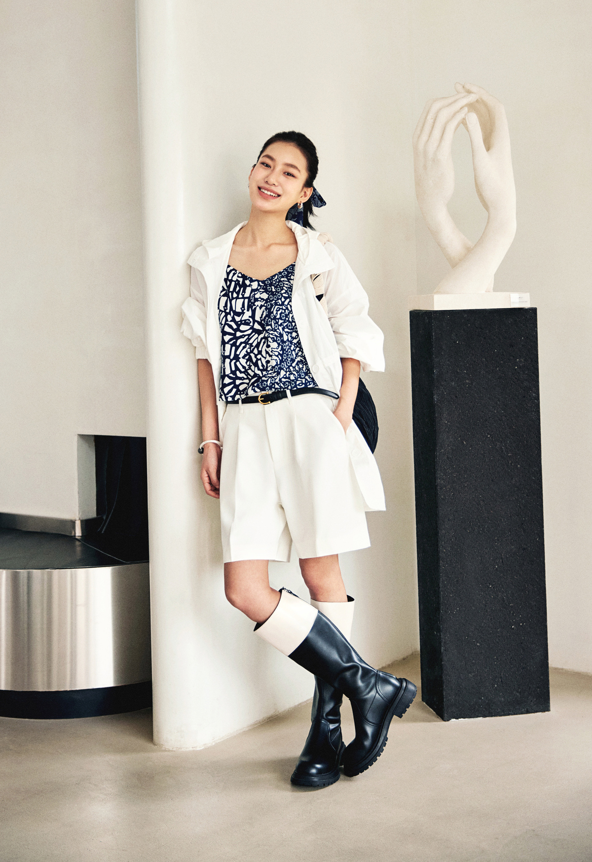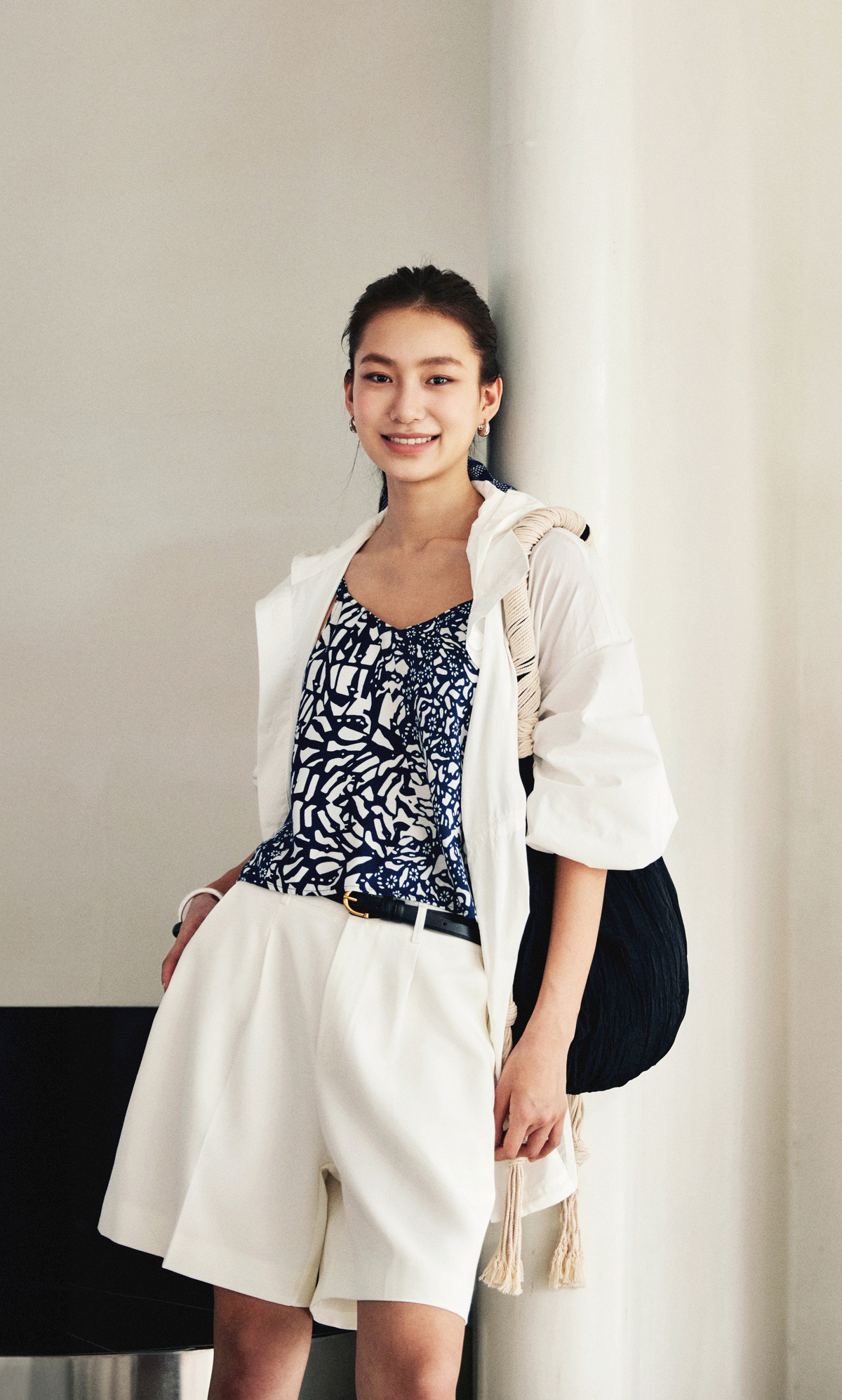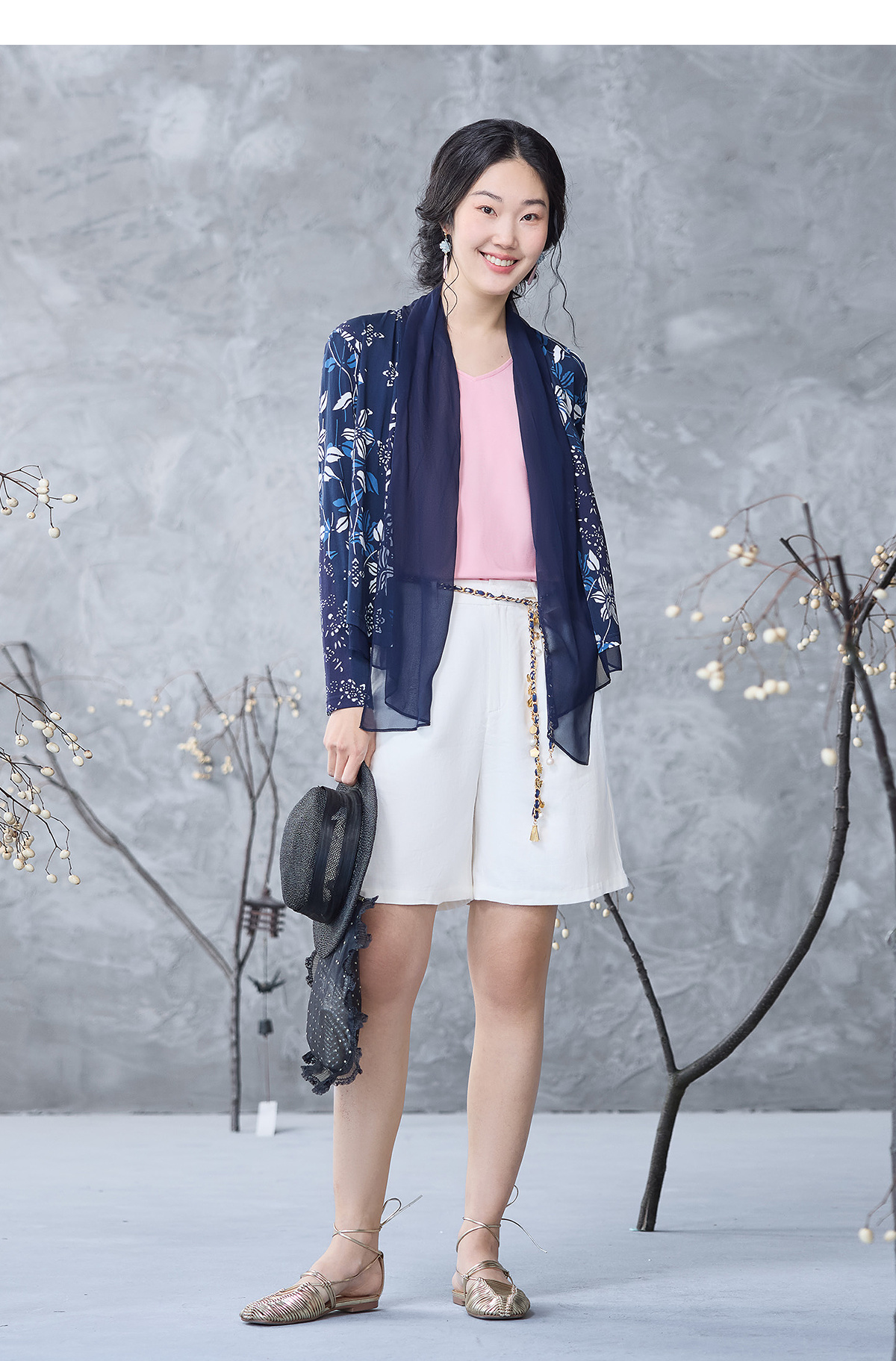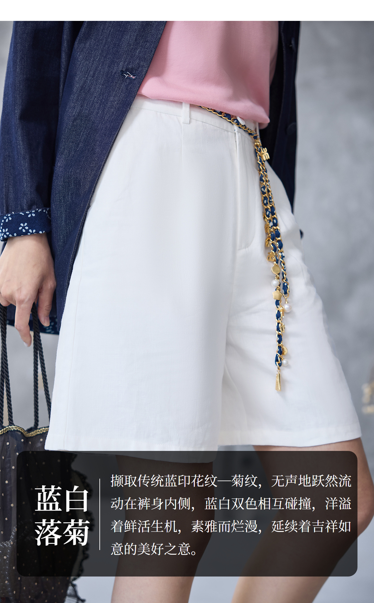 【林栖设计小店】亚麻裤子蓝印花纹时尚简约百搭宽松2025春夏新品短裤女1952032
