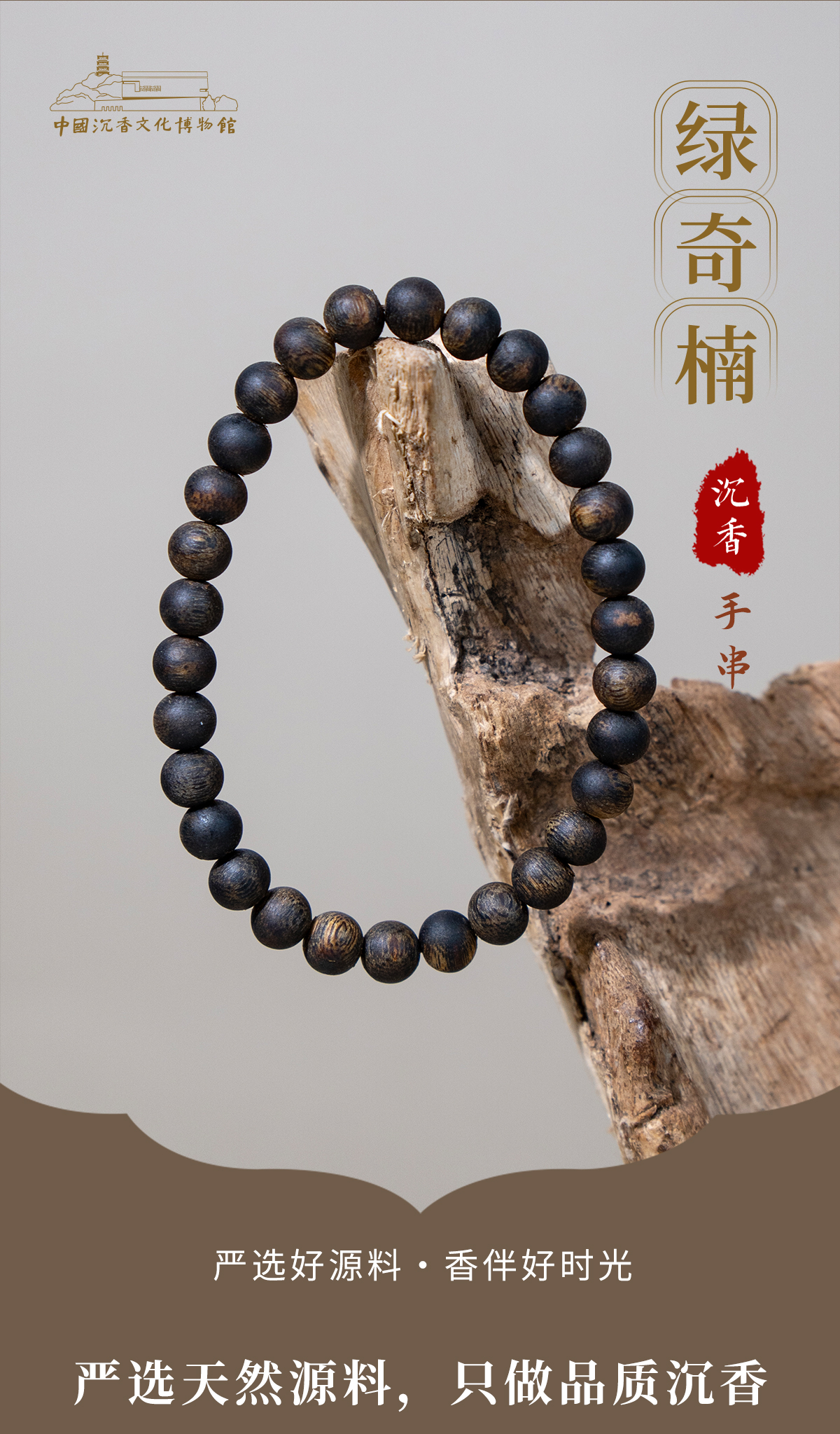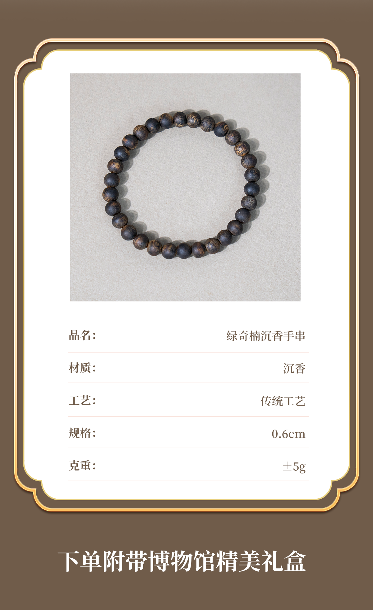 中国沉香文化博物馆 中国沉香文化博物馆绿奇楠沉香手串沉水级收藏佳品0.6*30*5g+