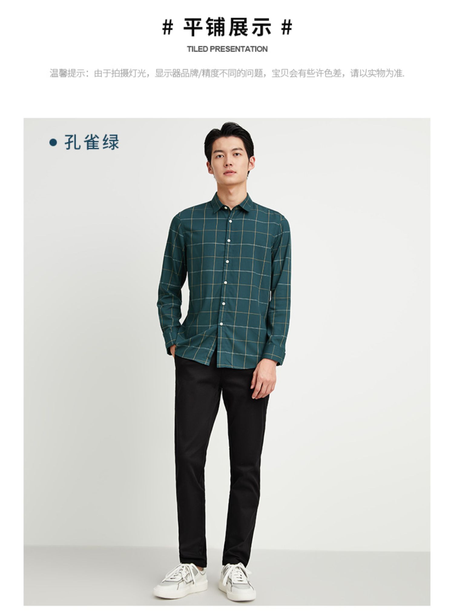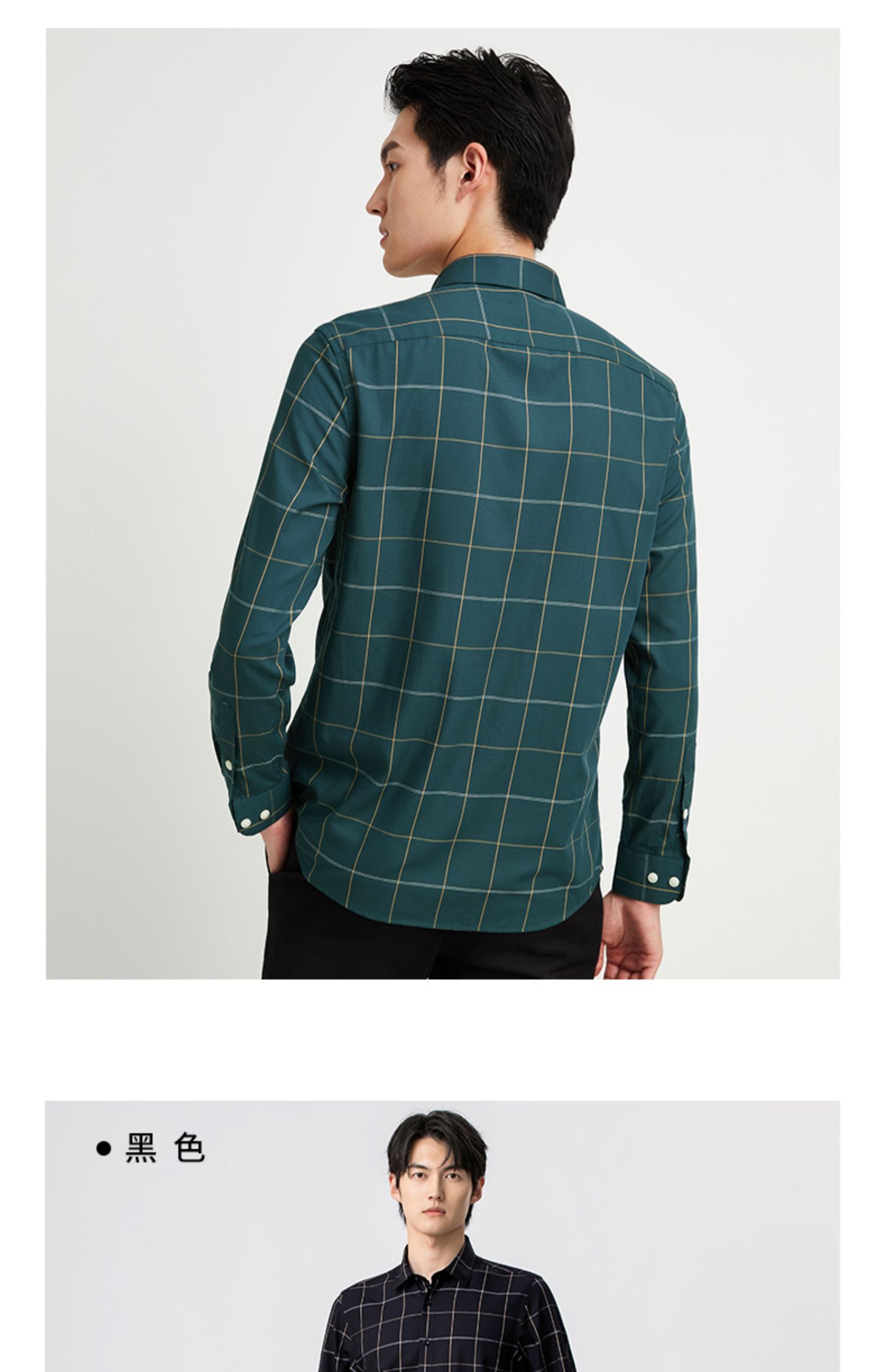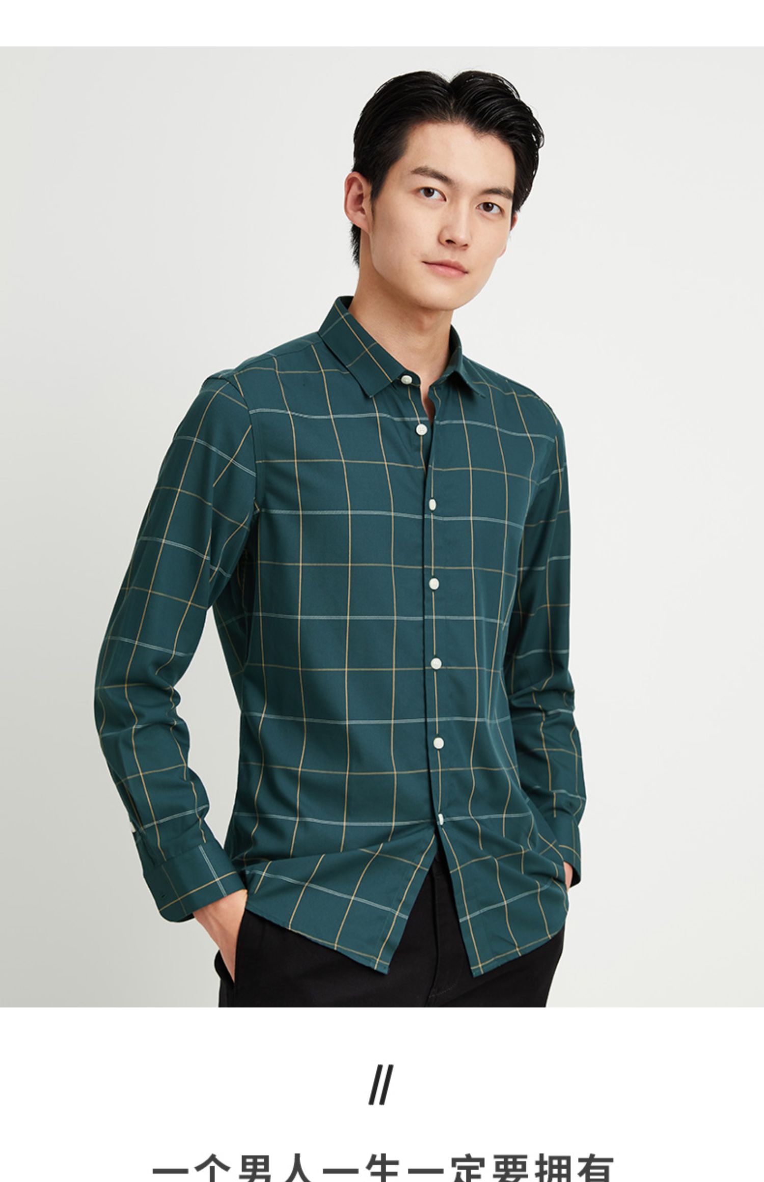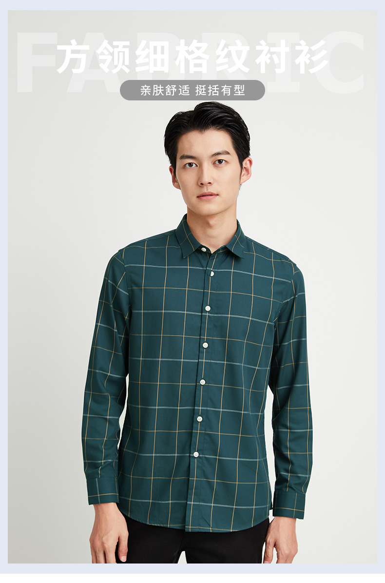 圣得西男士时尚格纹衬衫秋季潮流休闲百搭帅气方领衬衣男