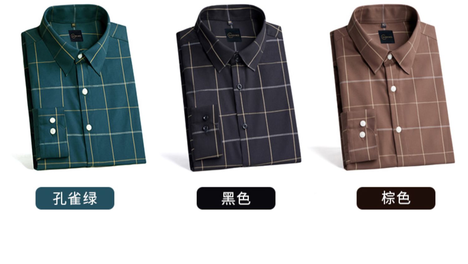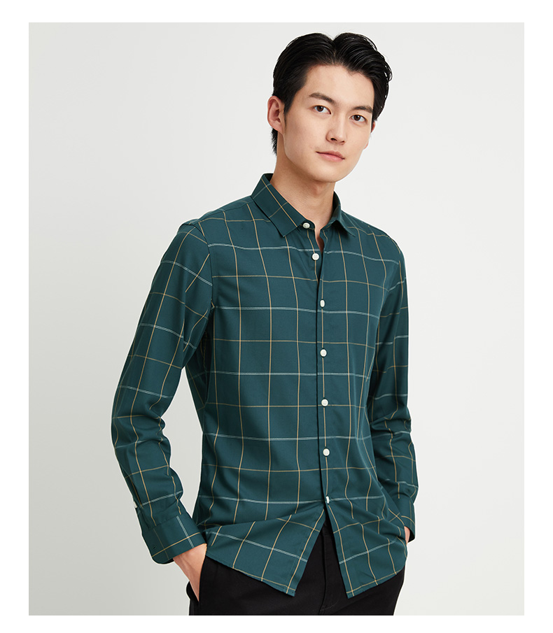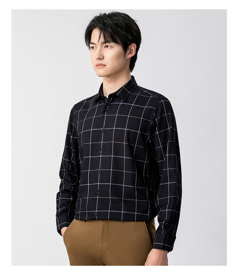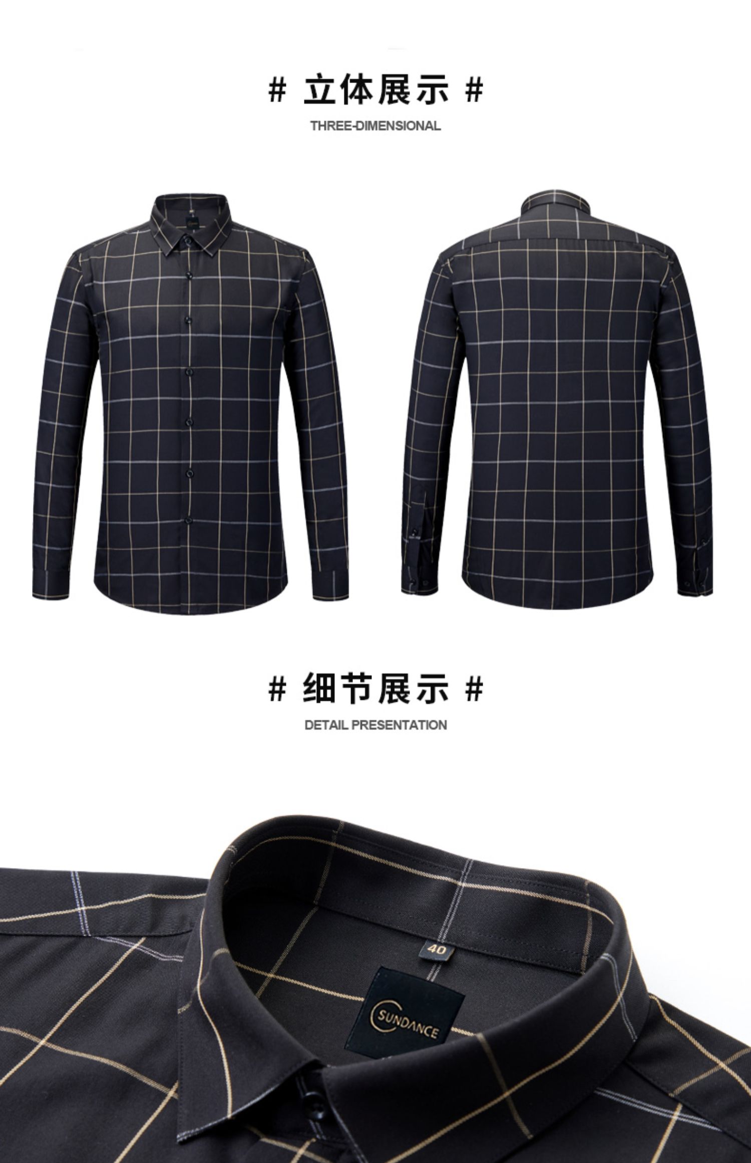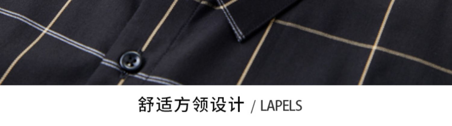 圣得西男士时尚格纹衬衫秋季潮流休闲百搭帅气方领衬衣男