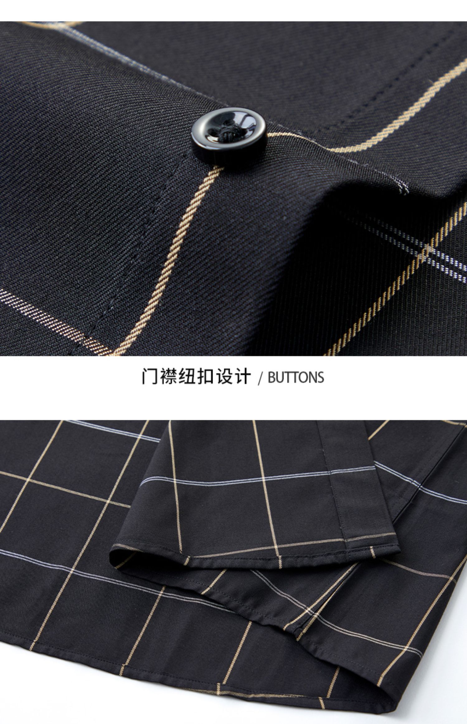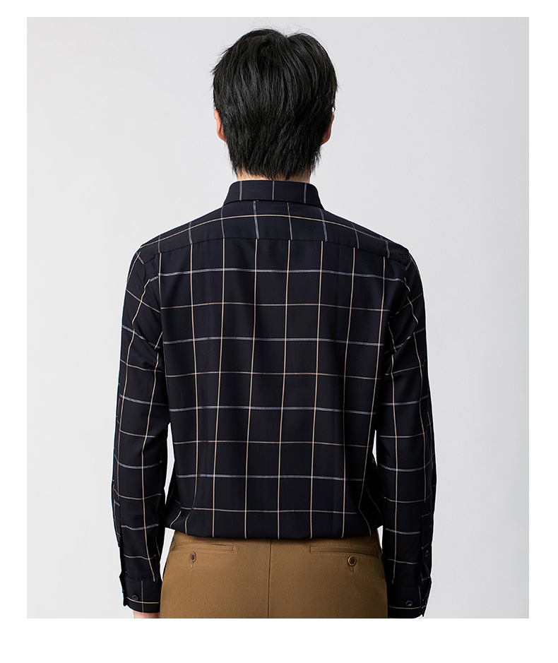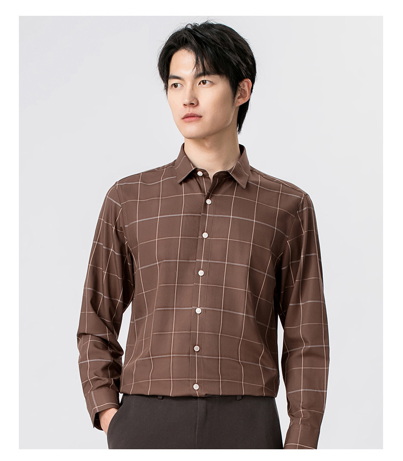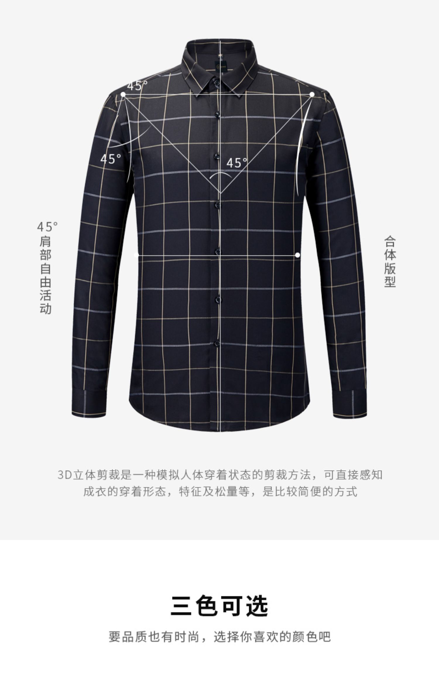 圣得西男士时尚格纹衬衫秋季潮流休闲百搭帅气方领衬衣男