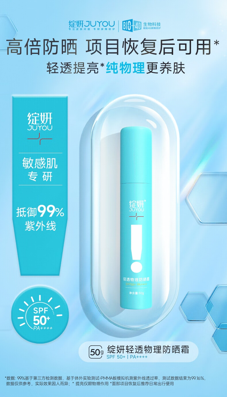 Gigi测评好物&绽妍轻透物理防晒霜50g 敏感肌面部身体SPF50+